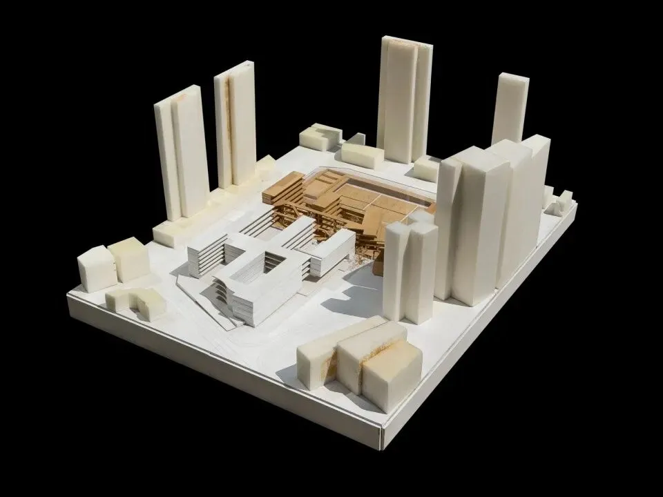 红岭中学石厦校区坐落于深圳福田的石厦片区,始建于2004年。这里是深圳大型社区的所有地,城中村与高层住宅小区交织共存,社区氛围浓郁。校园连同周围的一系列基础设施,组成街区内的公共服务网络。二十年间,随着周边中低密度的城中村转变为高密度的住宅区,红岭石厦校园的拓展空间日趋紧张。为了应对持续增长的学位需求,学校在原有场地内实施改扩建:拆除东侧体育馆及运动场地,并在原址新建教学与运动空间,实现功能补足与提升。改造后,学校规模从24班扩至36班,地上建筑面积由15000平方米增至43000平方米,空间容量提升近三倍。这一高密度挑战下,设计不仅要创造出高效便捷的功能布局,更应通过融入街道、呼应气候、联结新旧等多重对话,塑造出独具特色的校园场所。