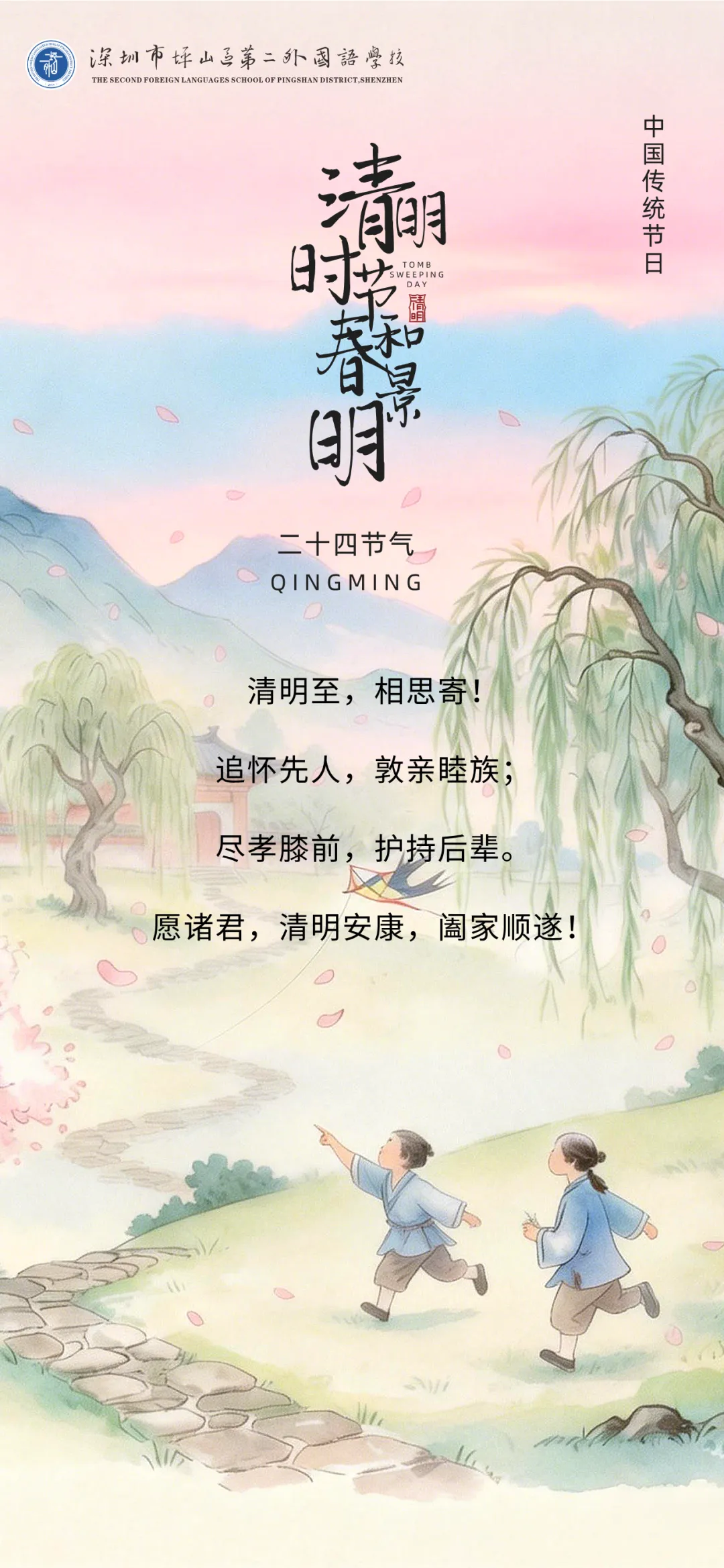 深圳市坪山区第二外国语学校祝大家清明安康