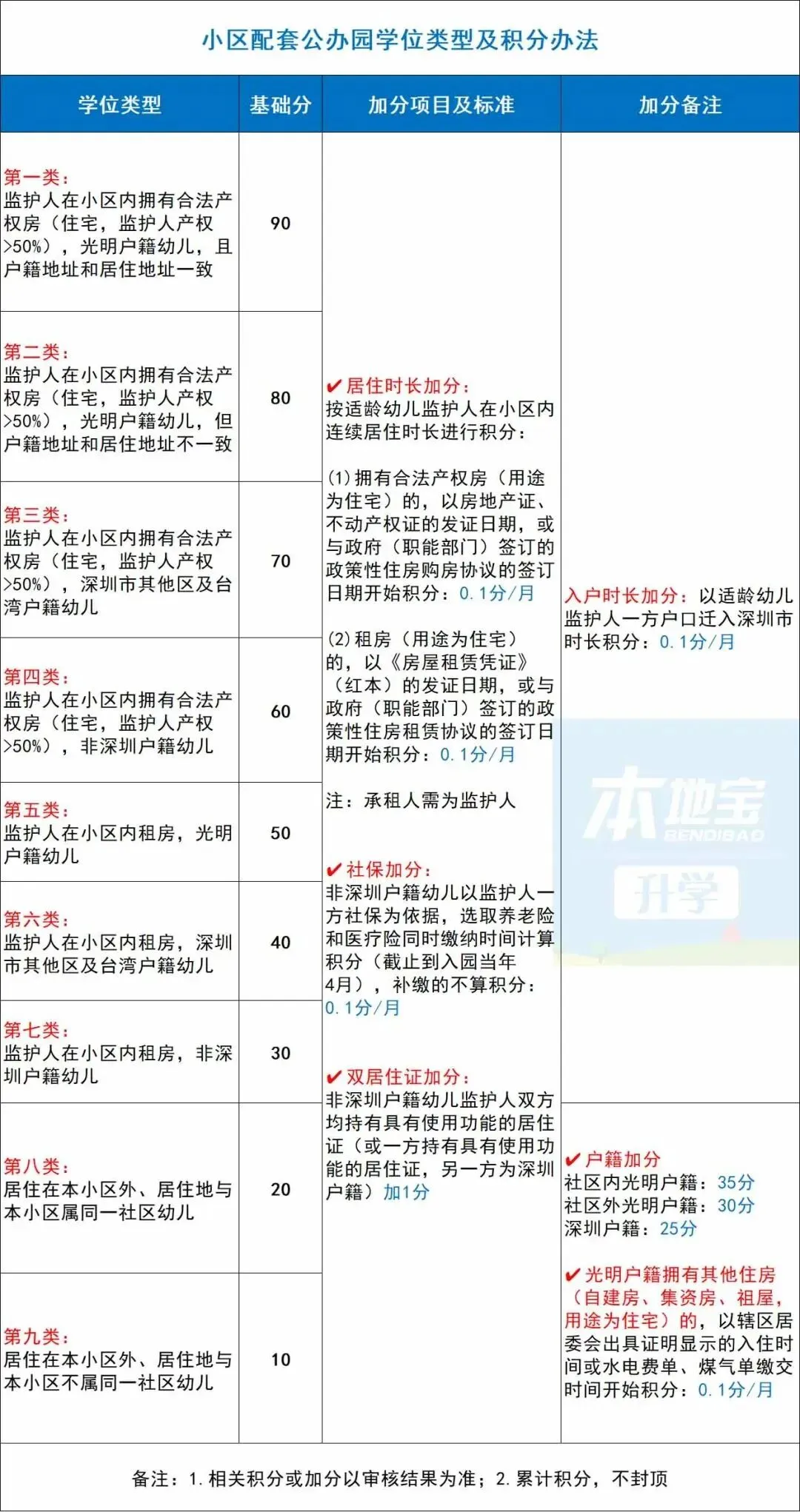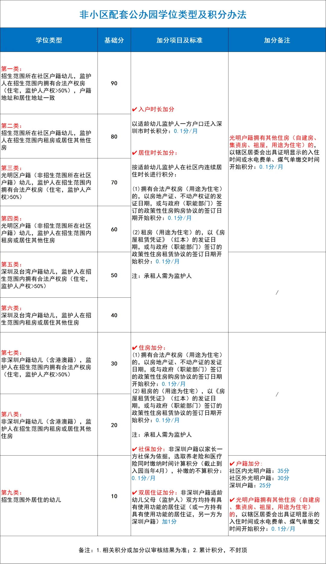 3.累加分中,持《深圳经济特区居住登记查询单》或蓝本《房屋租赁信息》的,住房项不加分;集体宿舍住房项不加分。