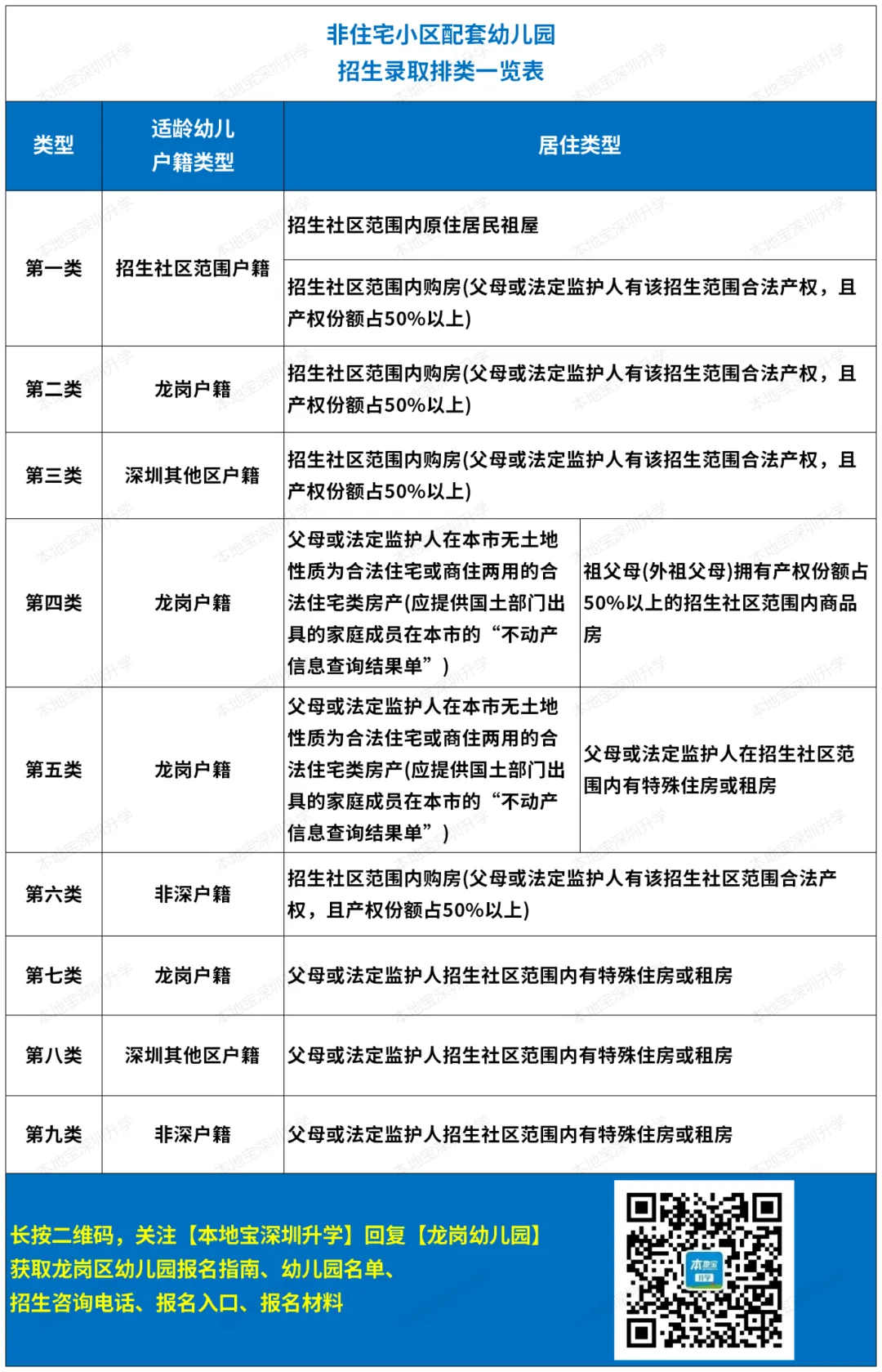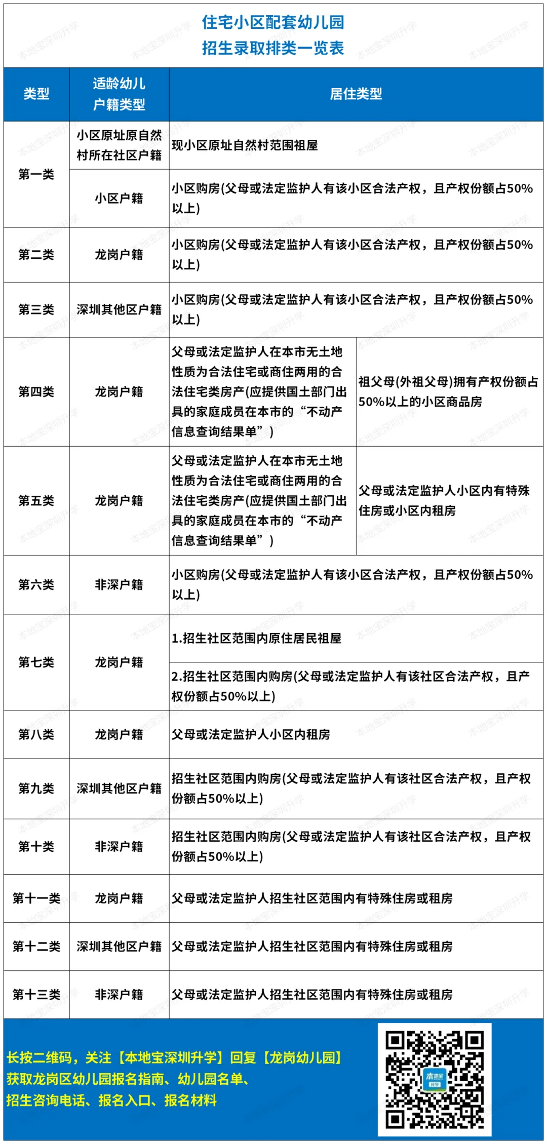 所有生源均按照《深圳市龙岗区学前教育阶段招生录取排类一览表》排类顺序进行录取,录满为止。