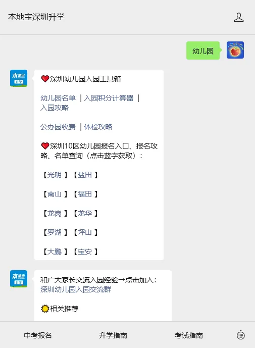 在各区教育局公众号,或者长按下方二维码,进入【本地宝深圳升学】回复【幼儿园】获取深圳10区幼儿园报名录取全指南、幼儿园名单等最新消息