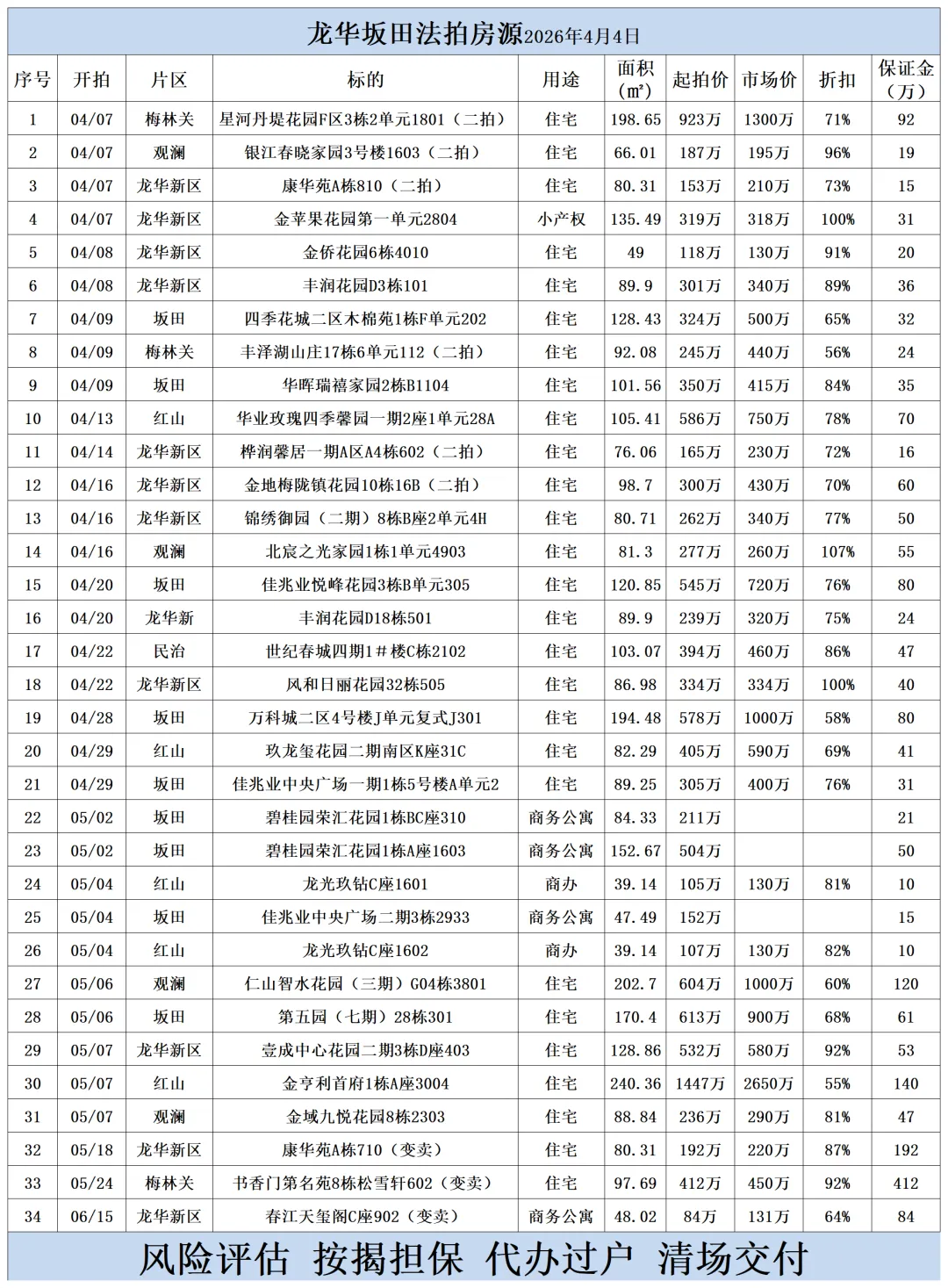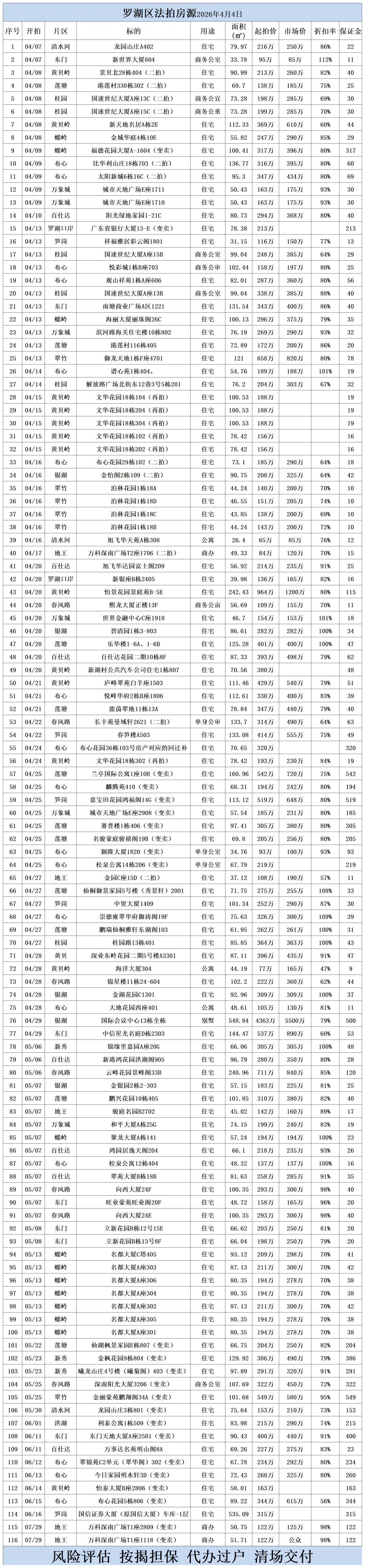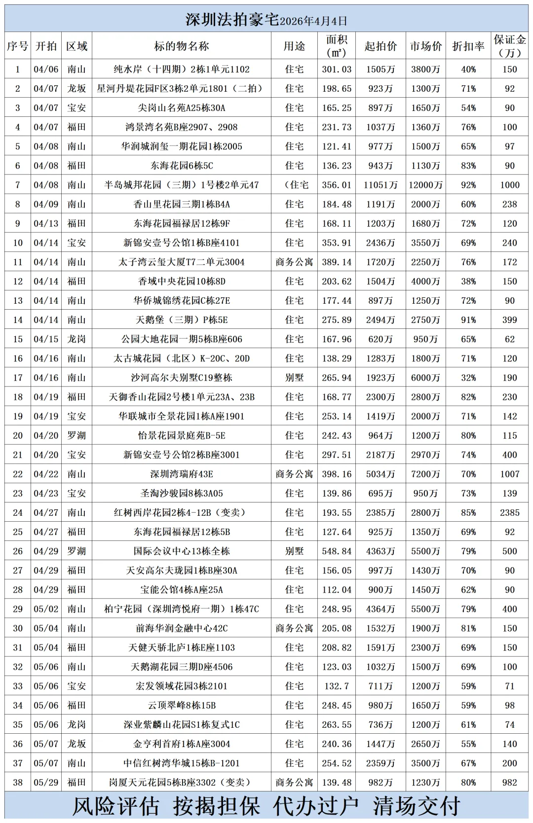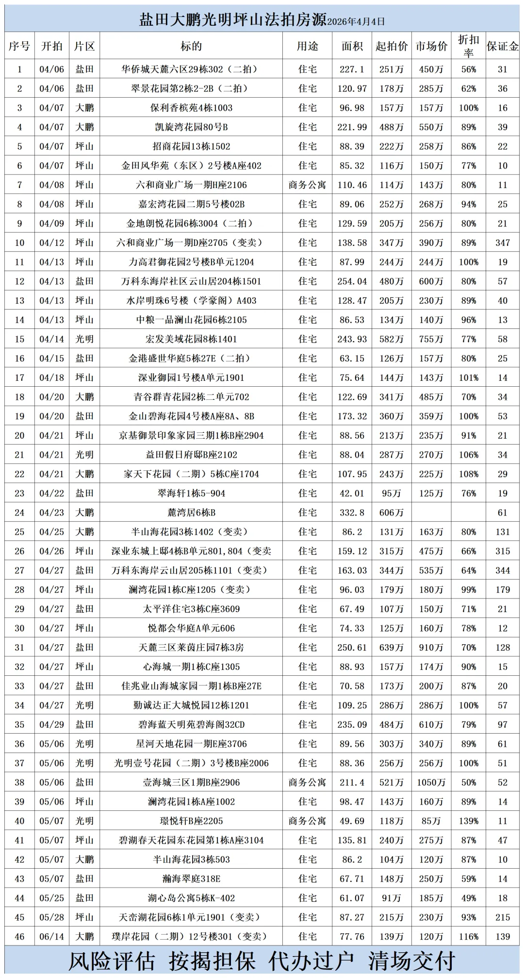 深圳各区法拍房源清单(2026.4.4)