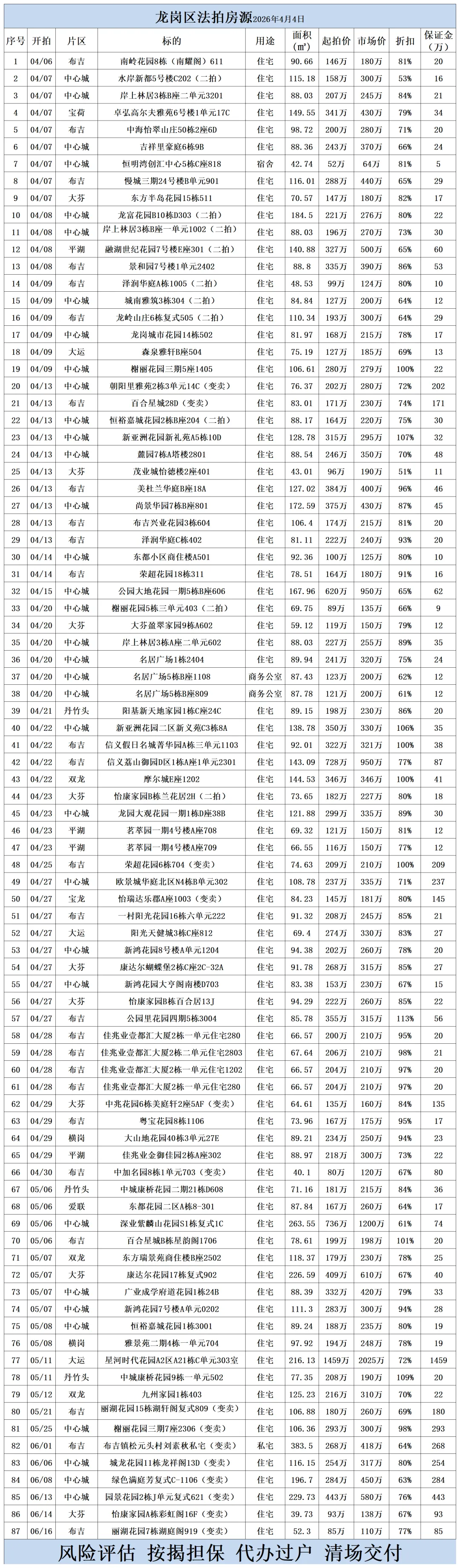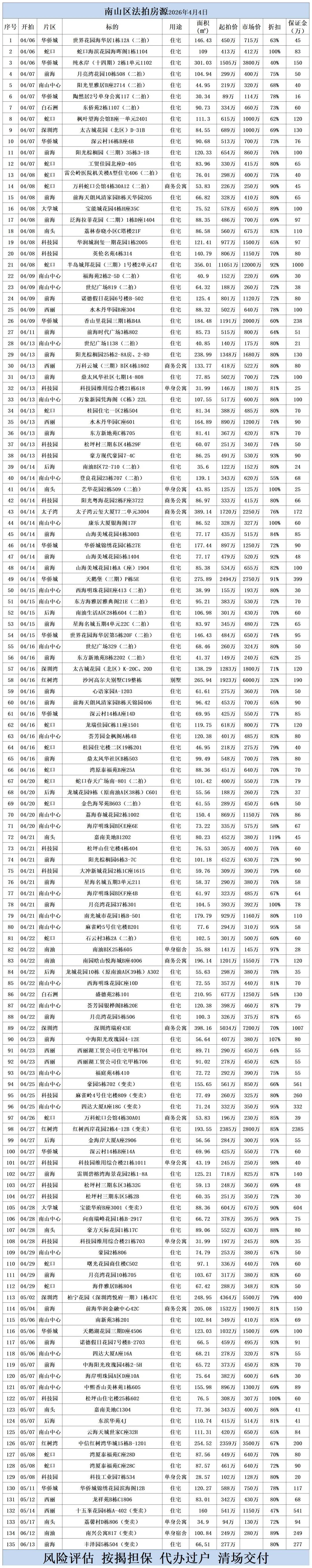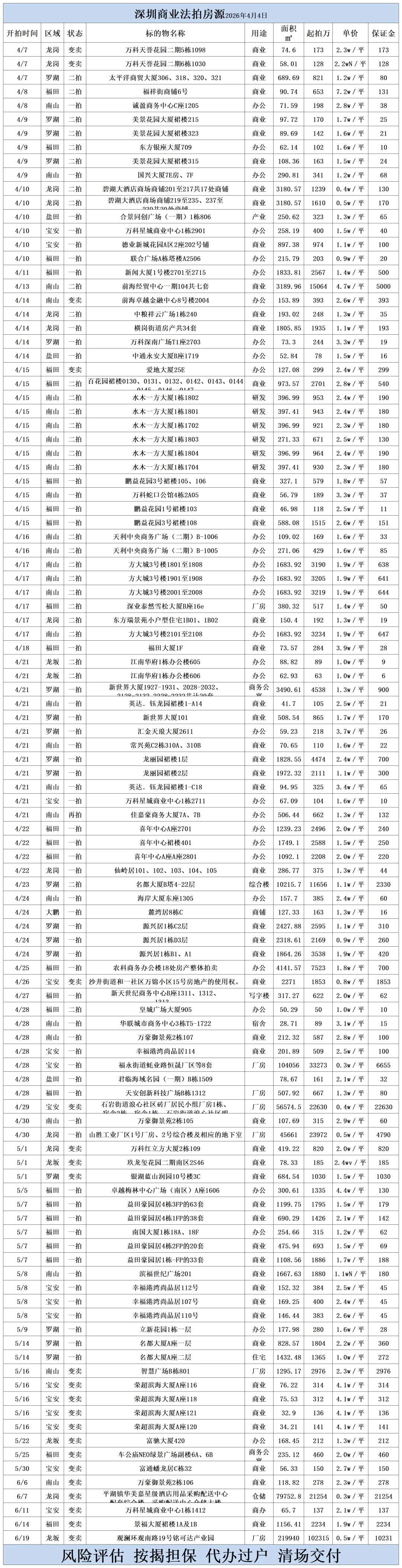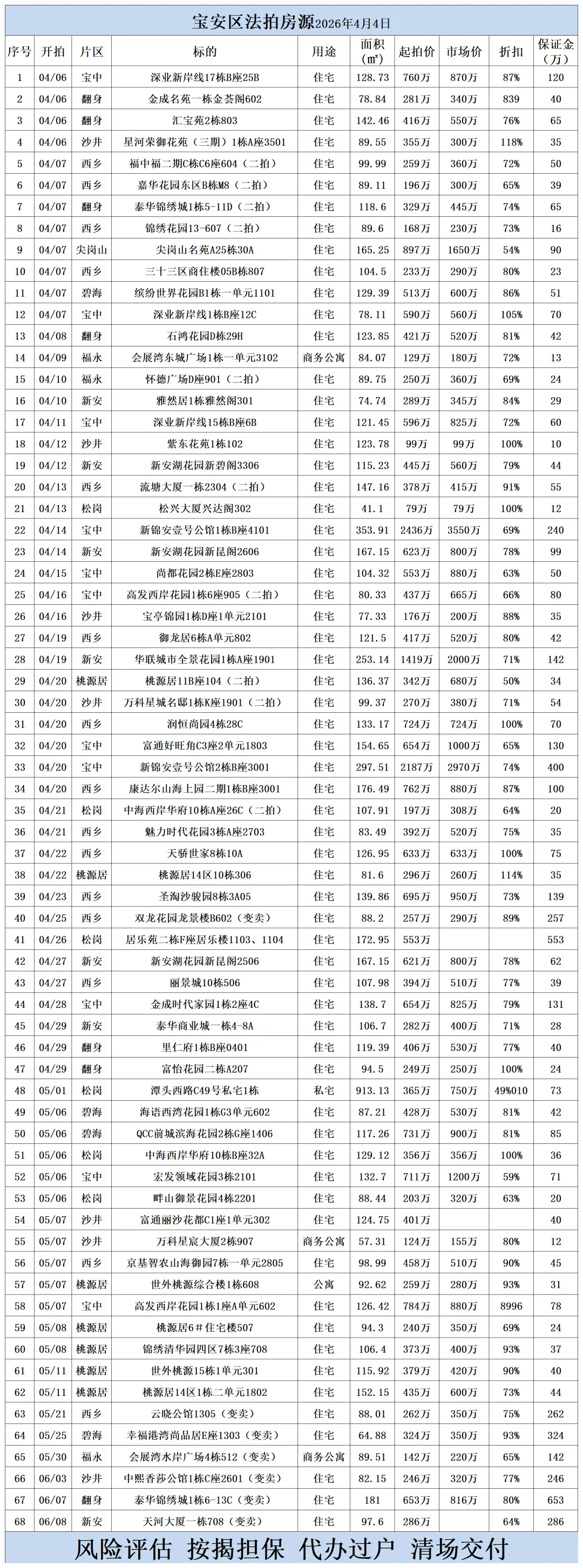 深圳各区法拍房源清单(2026.4.4)