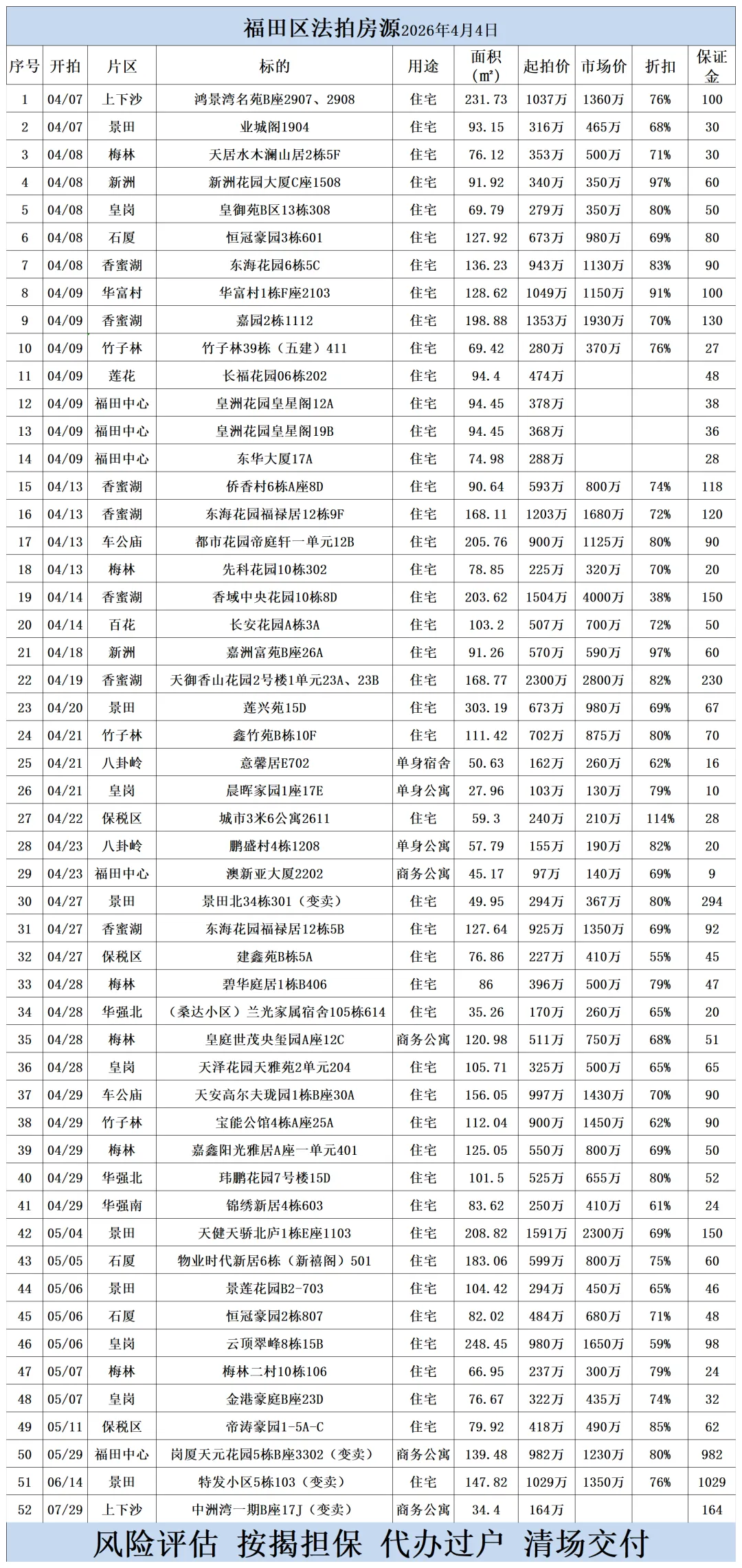 >深圳各区法拍房源清单(2026.4.4)