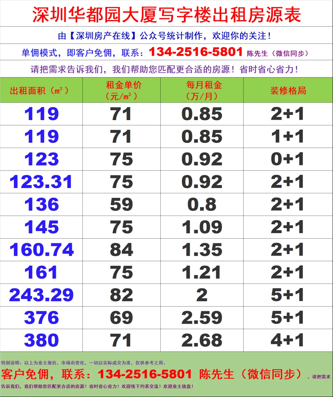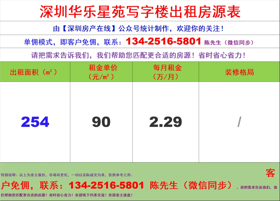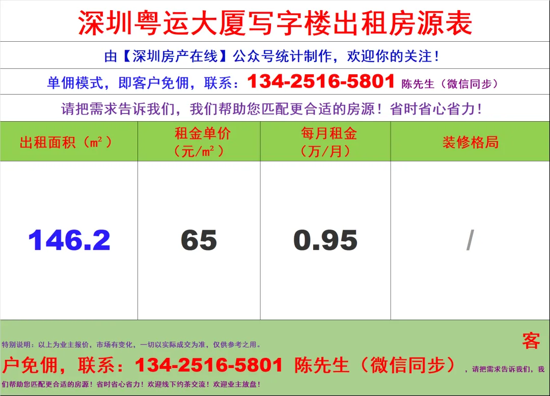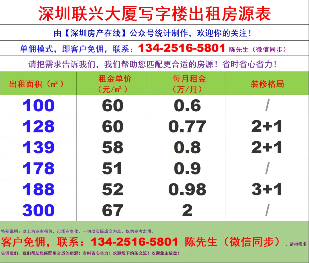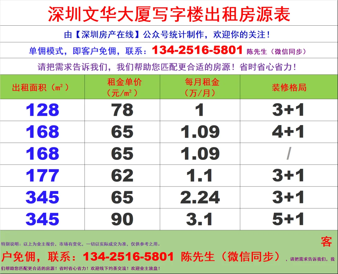 【深圳房产在线】陈经理写字楼租售团队:134-2516-5801 (微信同步)