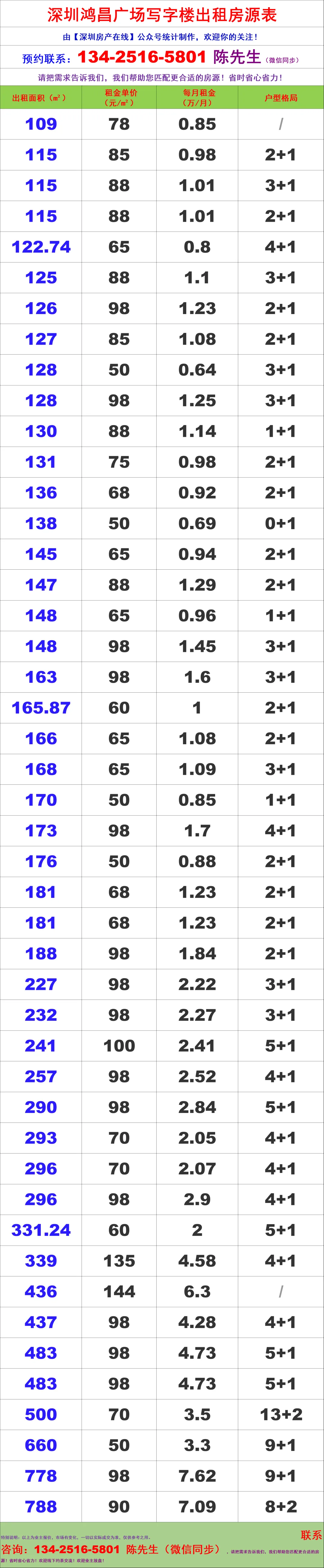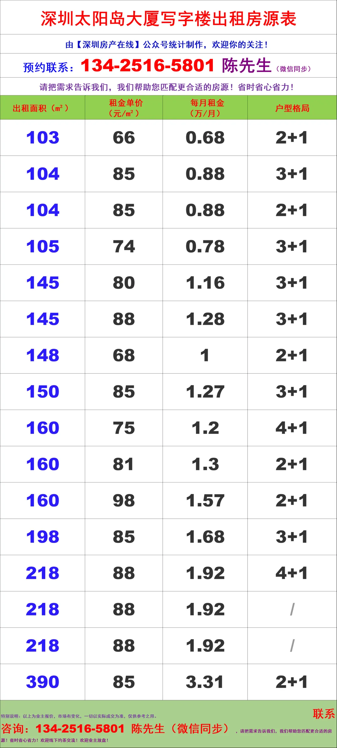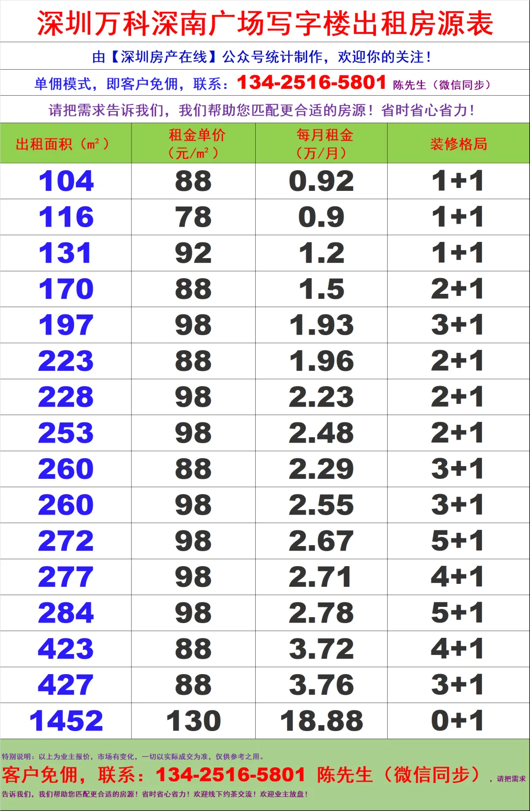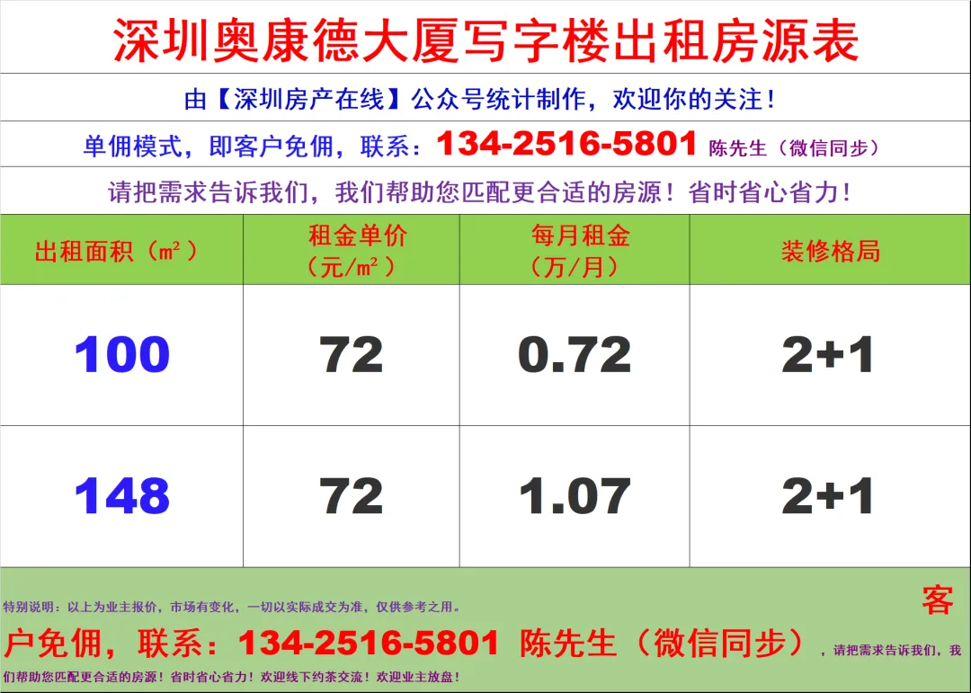 【深圳房产在线】陈经理写字楼租售团队:134-2516-5801 (微信同步)