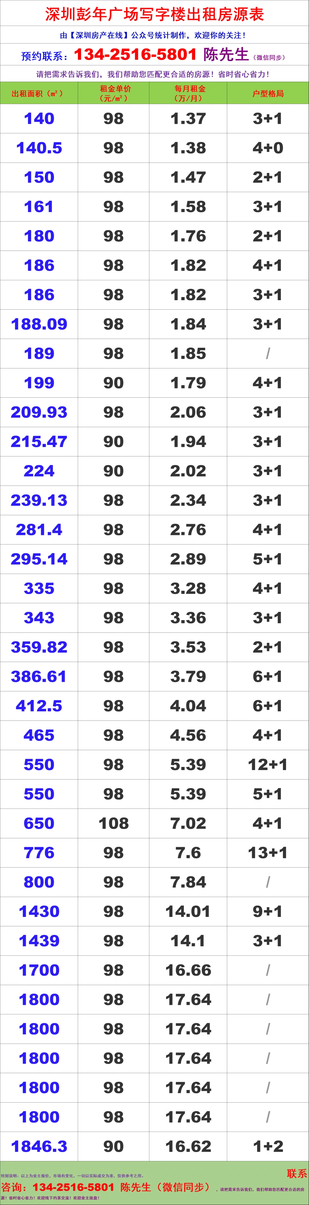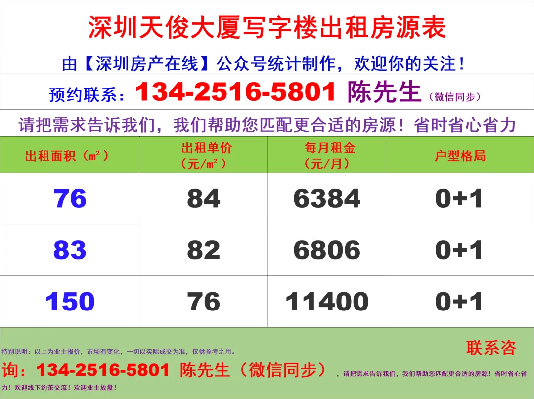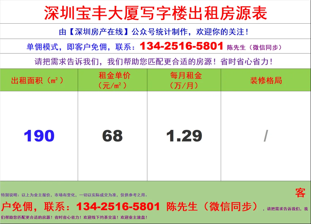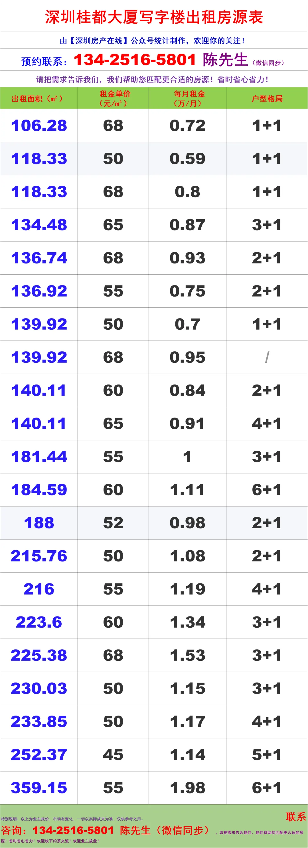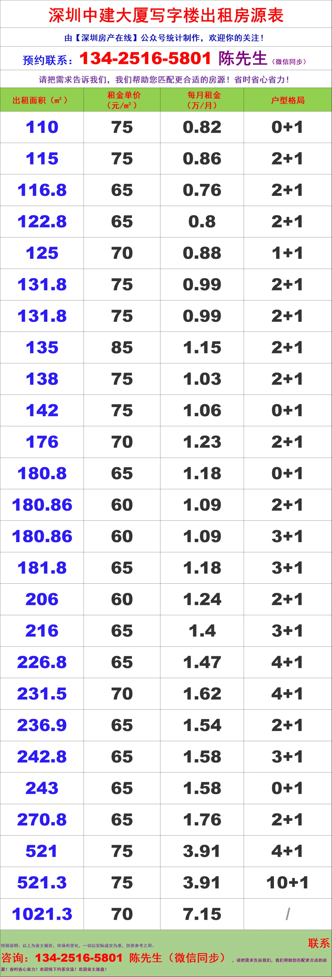 【深圳房产在线】陈经理写字楼租售团队:134-2516-5801 (微信同步)