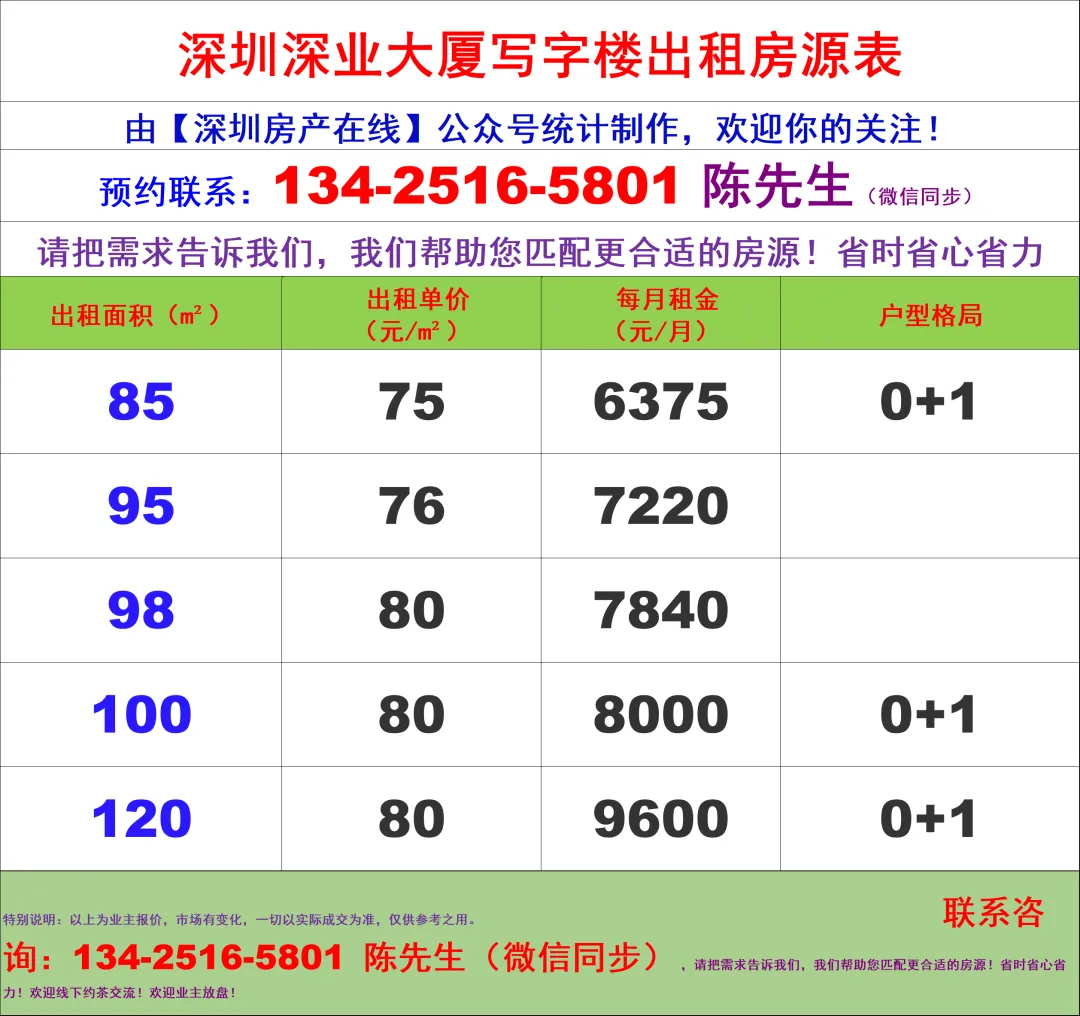 💌 关注公众号【深圳房产在线】,获取更多深圳写字楼租售动态!