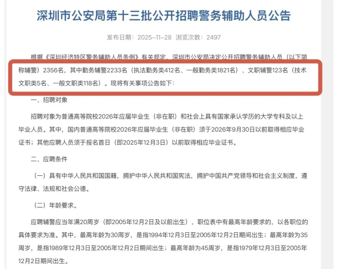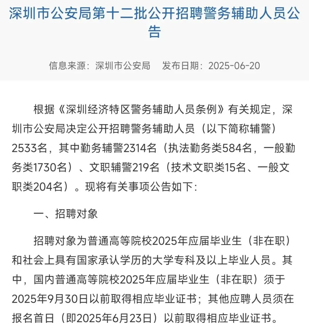 2025年深圳一共招了两次辅警。