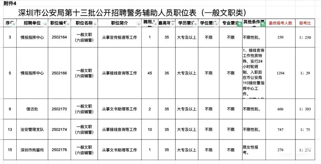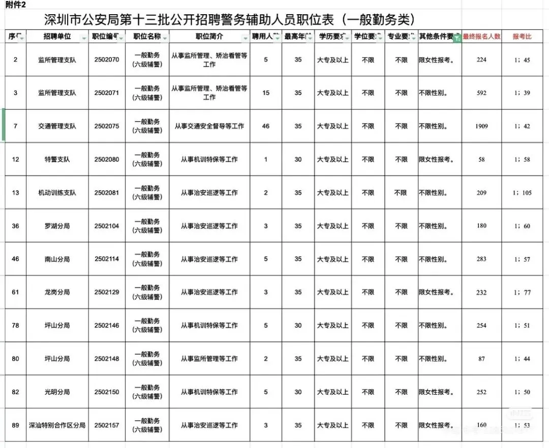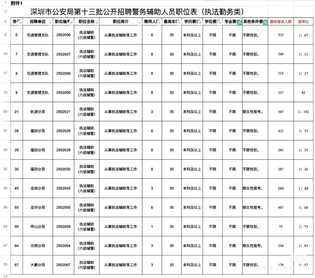 如果要报考第十四批辅警的女孩子可以参考一下报名人数,选择合适的岗位!