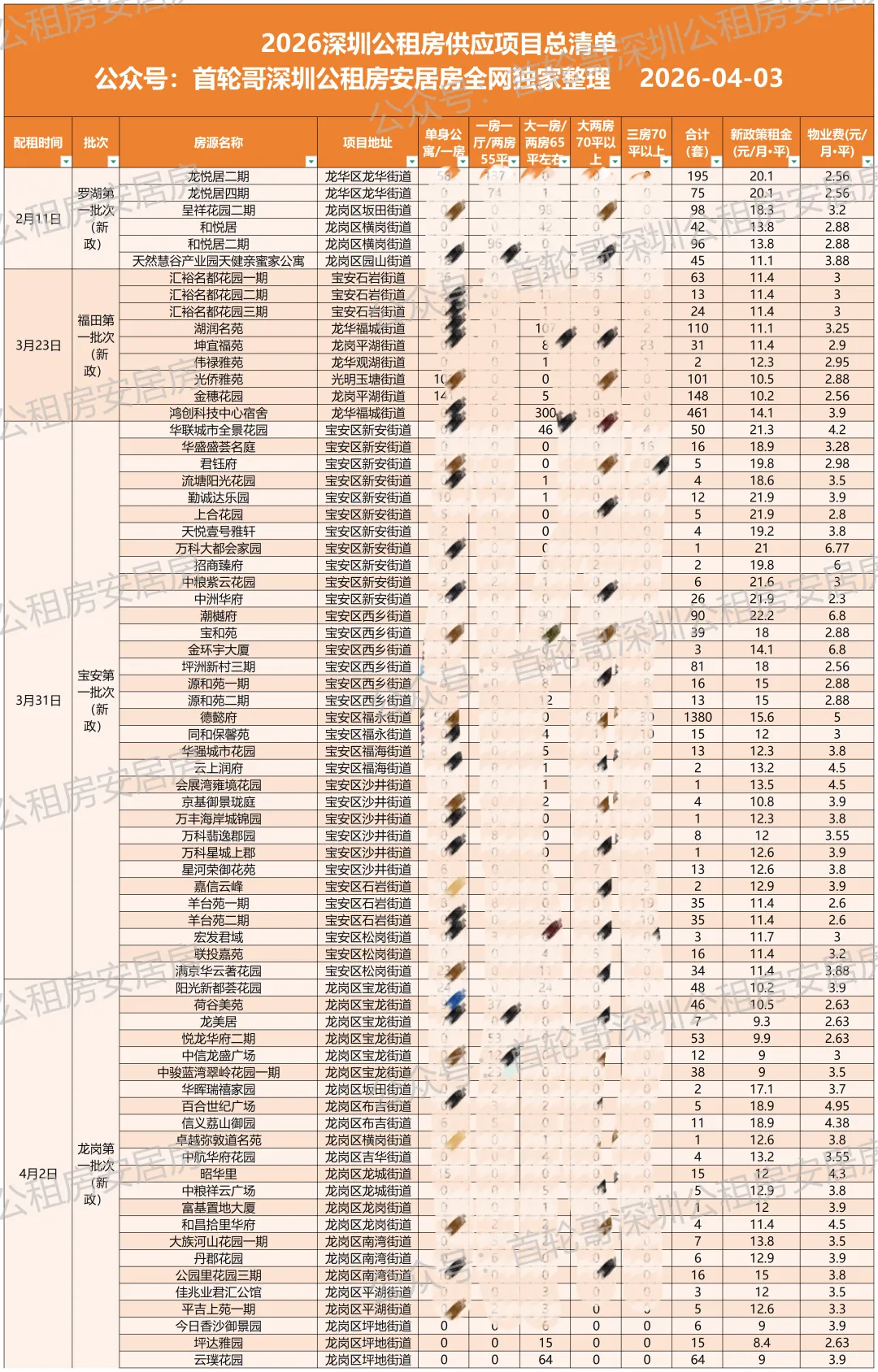 2026年,截止到4月4日,深圳公租房已经配租了4批,涉及宝安、福田、罗湖、龙岗四个区,合计3,814套。