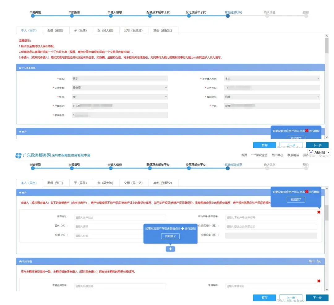 进入家庭经济状况填写页面,填写所有家庭收入财产信息,带*号的都是必填项,按照家庭情况如实填写,到时会汇集入户调查和到公安、人力资源保障、民政、住建、市场、监管、税务、规划和自然资源、教育、文体、海事、公积金中心等部门以及银行、保险、证券等机构进行多方面的信息核对!