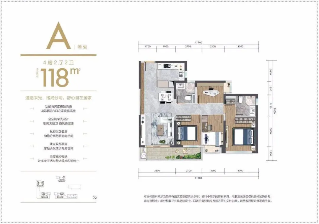 只有两个户型,118㎡四房720左右、156㎡五房1060左右