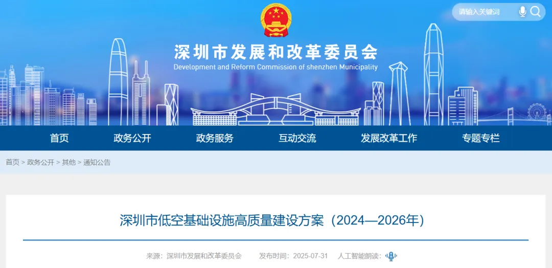 深圳新闻网《打造“全球低空经济第一城”深圳发布低空基础设施高质量建设方案》