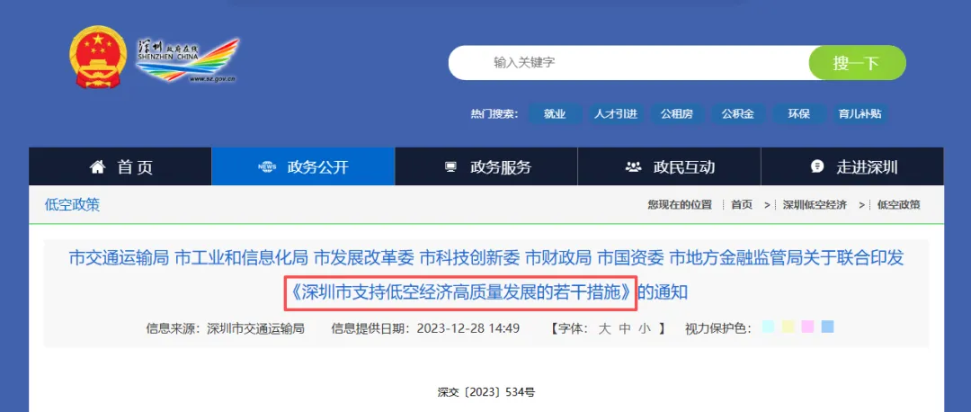 深圳市交通运输局《深圳市支持低空经济高质量发展的若干措施》及其实施细则