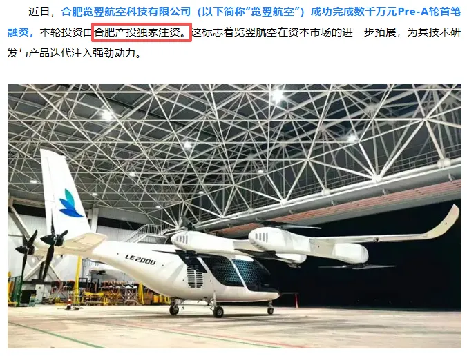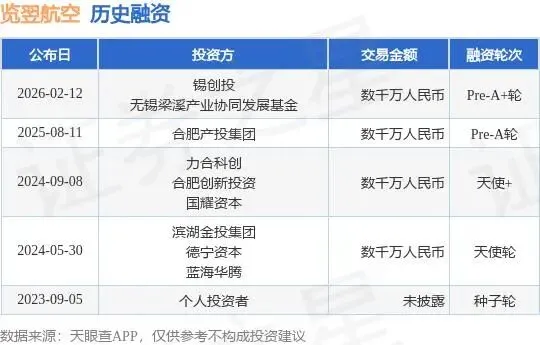 2026年2月,览翌航空完成数千万Pre-A+轮融资,投资方包括锡创投、无锡梁溪产业协同发展基金等。“独家注资”与追加投资的组合拳,传达了明确的信息:合肥国资愿意为本土低空企业“撑腰到底”。