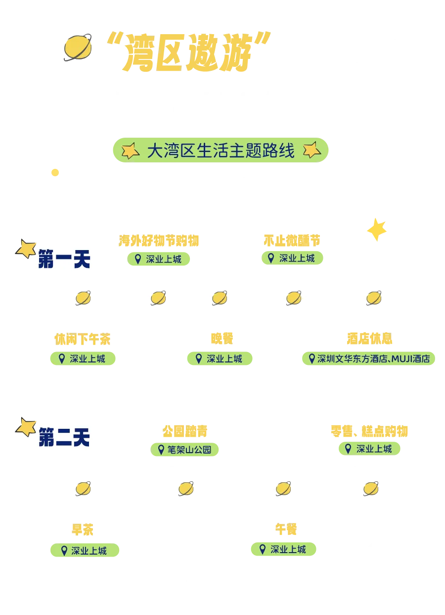 生活在深圳的你,不妨小长假来穿行其间,尽享不同的节庆优惠和文化活动,通过“活动护照”集印花的形式完成线路推荐点打卡,获得属于你的专属折扣。