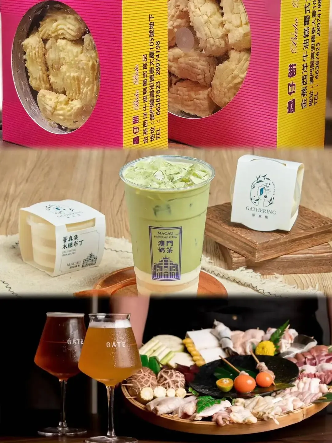 惊喜的是还有澳门主题摊位,拥有百年历史古法传统手工制造的金燕西洋牛油糕葡式食品、Gate12 元宇宙精酿、澳门啤酒、洪门葡萄酒、澳门冰室、Kidult、LOFT、薈真集GATHERING、美味茶餐厅。