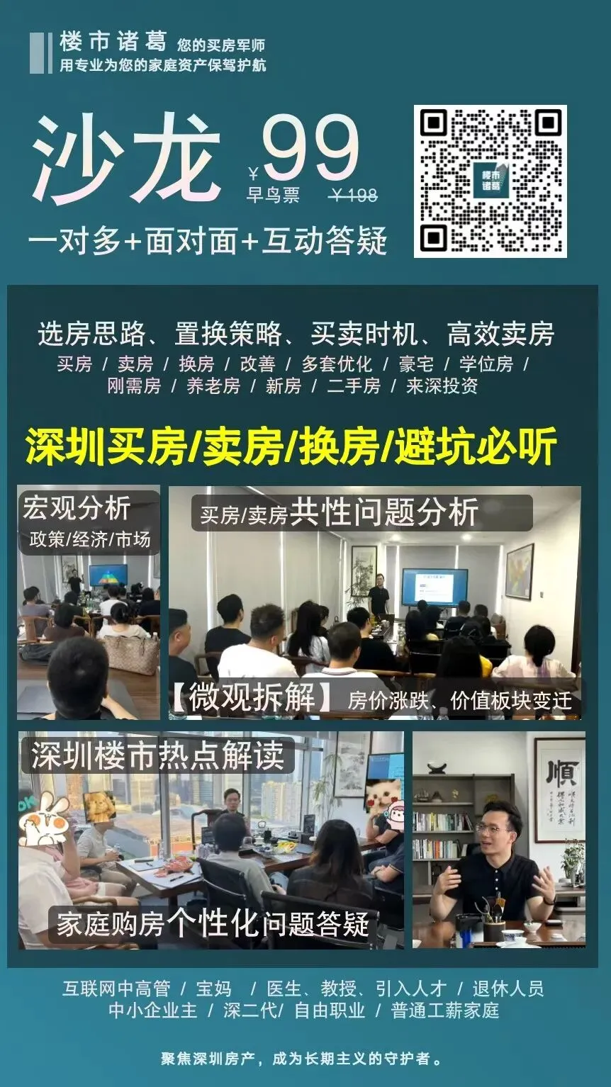 城市更新这条路,为什么越来越难走了?未来城市的优质资源将更大尺度地向哪里倾斜?深圳哪些区域更有潜力?现在是买入或置换的时机吗?如何才能选到保值增值的房子?线上的分析会受到很多限制,要真正把握趋势,离不开面对面的深度交流。为此,我们紧急升级了下周六的线下沙龙内容,为你系统梳理两会信号、房价走势、区域分化与选房策略等核心问题。本次沙龙不仅涵盖过往精华,更结合了近期的市场实际走向,重点探讨:买房决策👉房价长期将如何变化?深圳还是最具潜力城市吗?房产和理财如何抉择?时机把握👉利好频出,市场见底了吗?刚需现在出手还是再等等?置换该如何规划?标的筛选👉买哪里、什么样的房子?深圳会如何救市?新周期下,什么样的房子救不起来?无论你正在买房、换房还是资产优化中,相信都能在这场交流中收获启发,甚至颠覆你的原有认知。部分原价9800元的会员专享内容,现开放99元沙龙体验名额。房产决策事关重大,一次深度交流或许能为你避免潜在误区,把握真正机会。