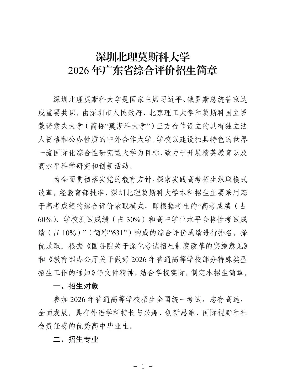 深圳北理莫斯科大学2026年广东省综合评价招生简章发布!