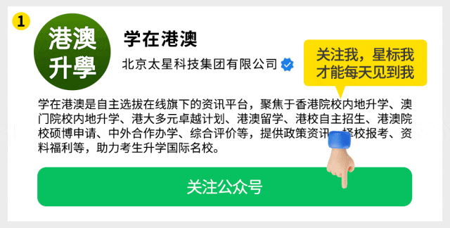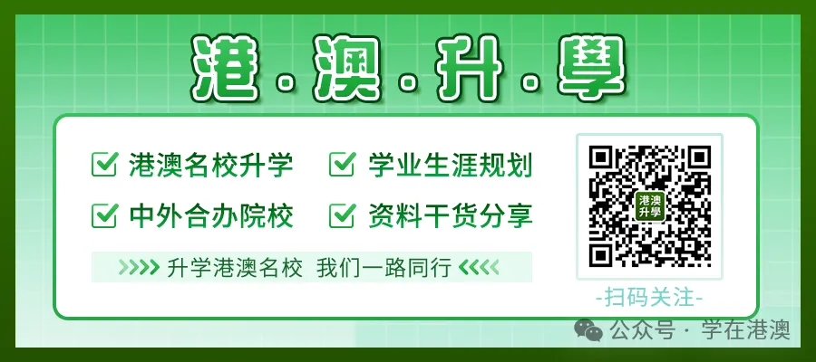 学在港澳公众号持续关注港澳院校招生动态,分享中外合作办学资讯,提供报考指导,提醒各位考生和家长关注公众号。声明:本文由学在港澳(微信公众号:xzgangao)整理编辑,内容来源网络,如有侵权,请及时联系管理员删除。