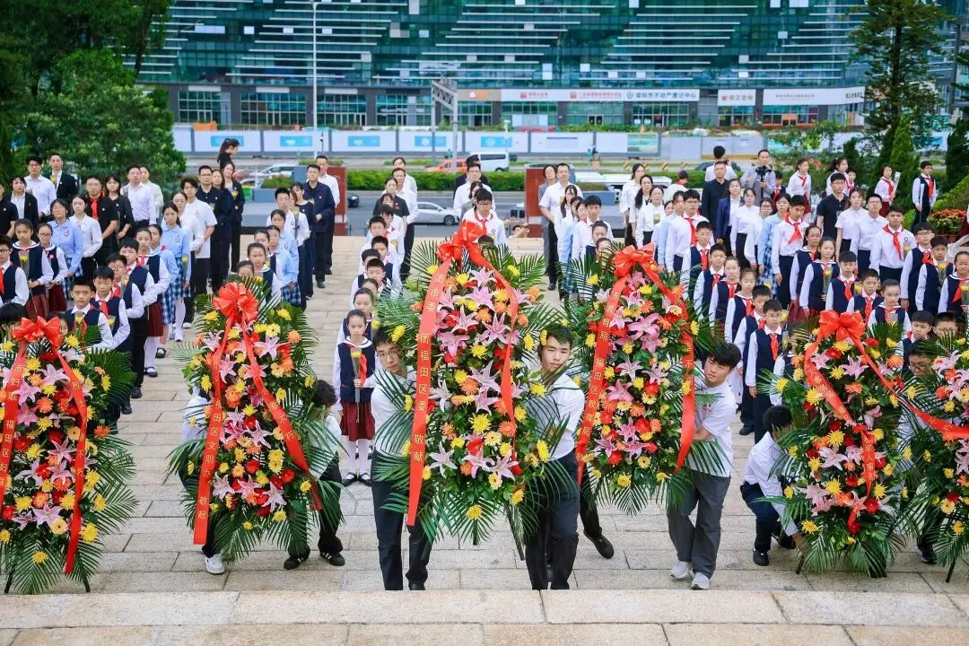 稚嫩而坚定、青春而有力的誓言在陵园上空回荡,这是新时代深圳青少年对先烈的告慰,更是立志担当民族复兴大任的庄重承诺。仪式最后,全体人员绕行瞻仰革命烈士纪念碑,献上鲜花,寄托哀思。