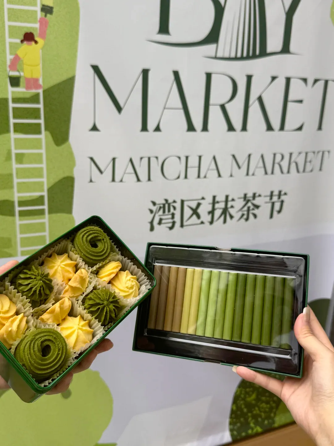 这场抹茶节的创意,藏在每个细节里。深圳湾万象城C区户外街区被打造成绿意盎然的打卡场景,原木摊位搭配抹茶绿装饰,随手一拍都是春日氛围感大片。逛累了还能参与互动体验,看茶艺表演、学抹茶冲泡技艺,在茶香氤氲中感受传统文化的韵味。