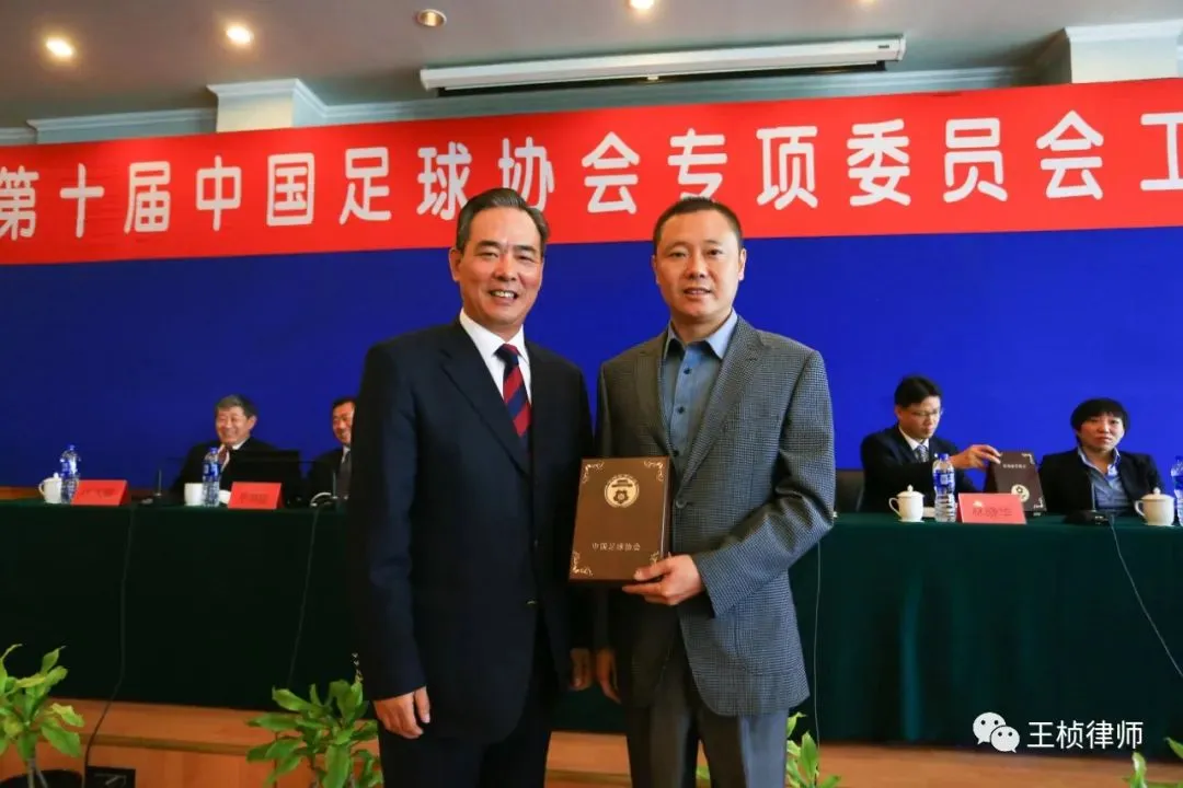 中国足协主席蔡振华向王桢律师颁发证书律师