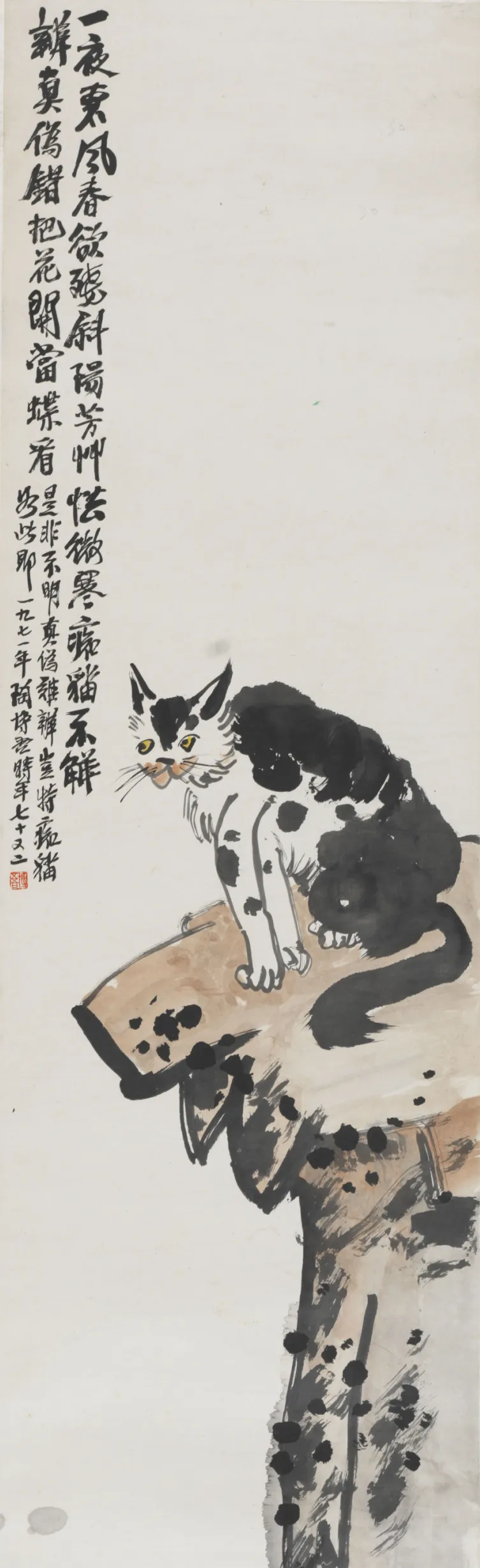 《猫石图》1971年 纸本设色 112cm×34cm