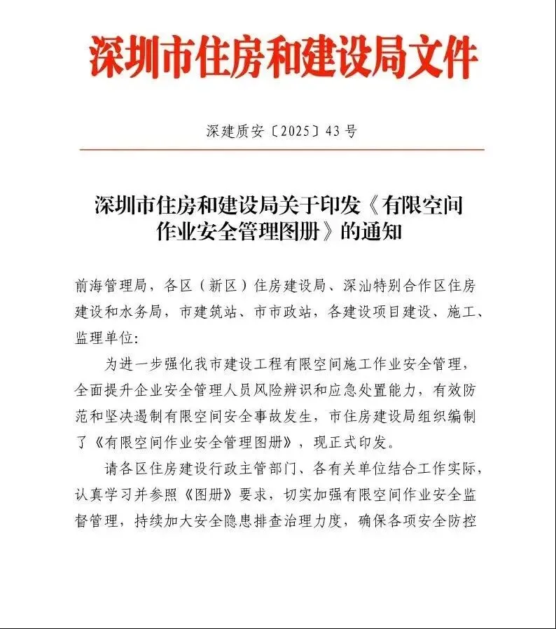 >深圳市住房和建设局关于印发《有限空间作业安全管理图册》的通知!