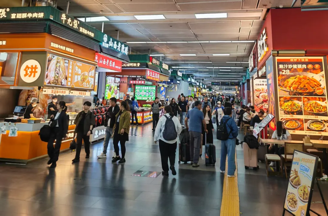 而在罗湖口岸的深港融合商业街,记者感受到了浓浓的商业气息。这条紧邻口岸的商业街,如今已成为港客过关后的“第一站”,餐饮、零售、便民服务一应俱全,许多香港游客推着行李“边走边逛”。