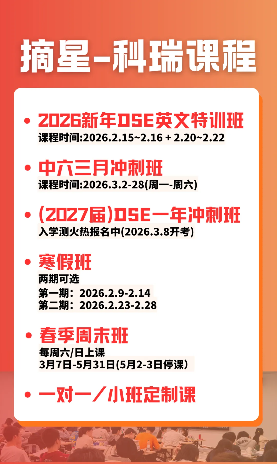 目前摘星班招收香港课程DSE的中四、中五学生!