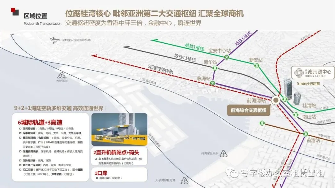 前海鸿荣源中心所处的便利交通枢纽: