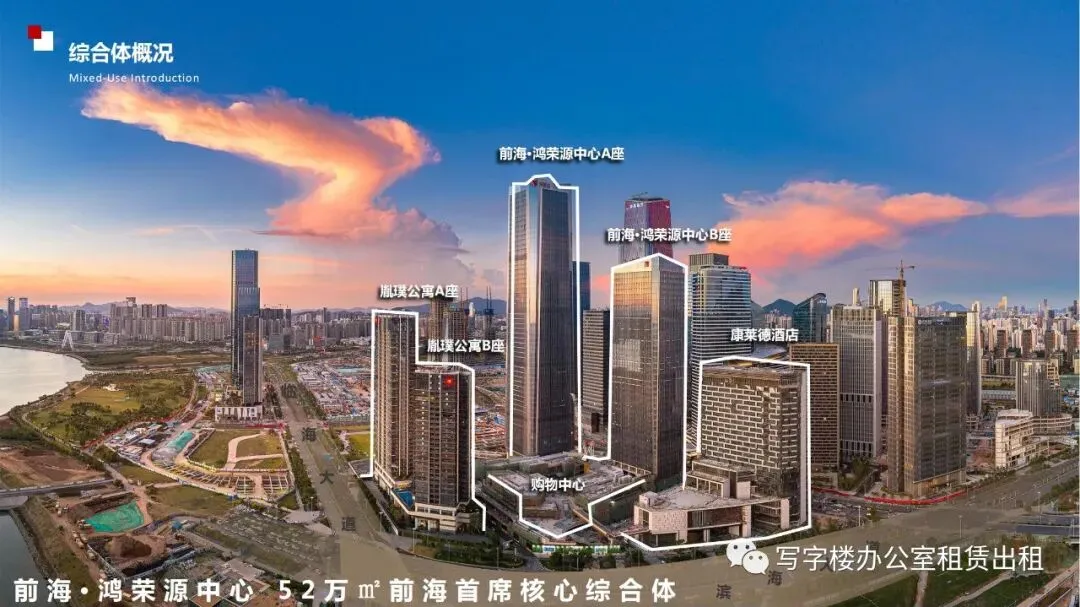 前海鸿荣源中心,前海标志性建筑,海景写字楼,仅租168元/方,无中介费,欢迎预约品鉴!