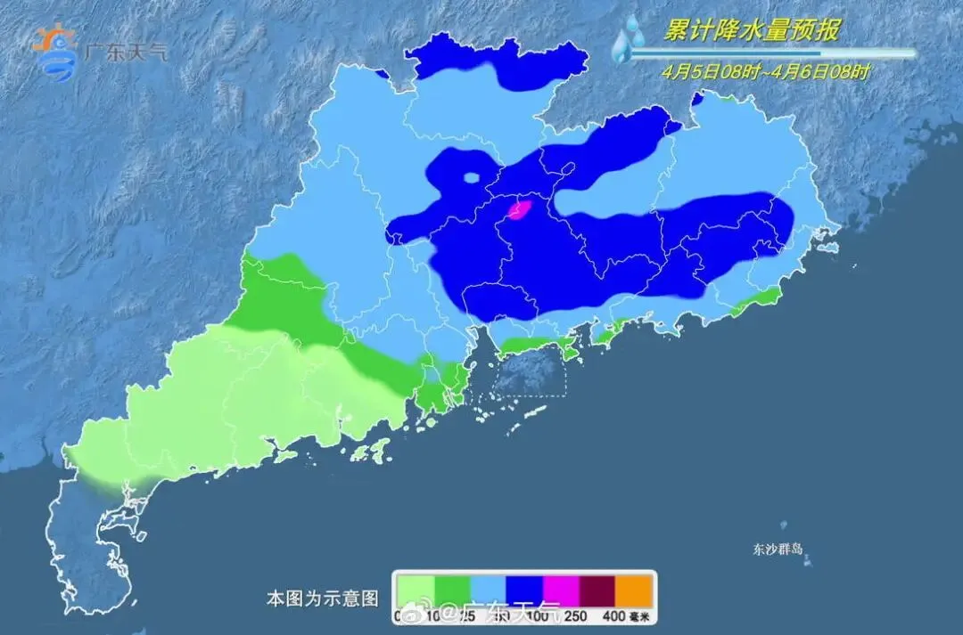 5日,珠三角、粤东和粤北市县有大雨到暴雨,局地大暴雨,雷雨时部分地区有短时强降水、8级左右的雷雨大风。
