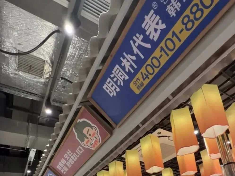 明洞朴代表自助烤肉的位置挺好找,到了宝能中心 E 栋上 7 楼就能看到。店面装修充满韩式风情,木质桌椅搭配彩色的韩国海报,暖黄色的灯光营造出热闹又温馨的氛围。