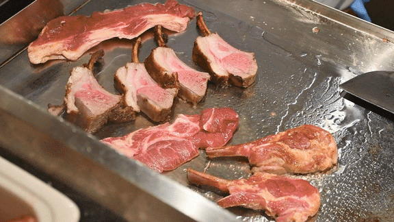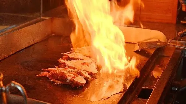 铁板高温煎烤,发出“滋滋”冒油的响声