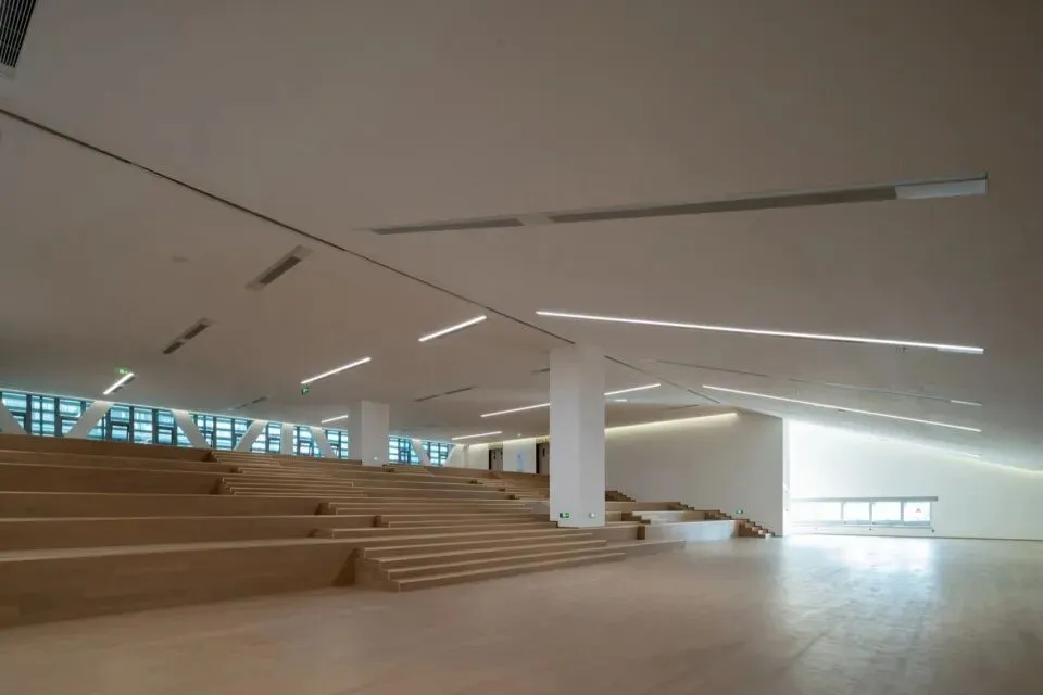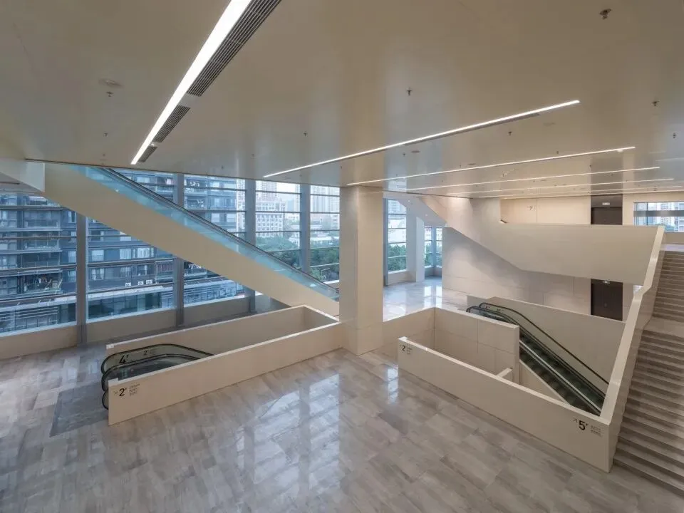 在二层及以上,我们塑造了一个贯通多层的通高公共大厅。这里超越了单一的交通功能,成为建筑内部的核心活力场与视觉焦点。