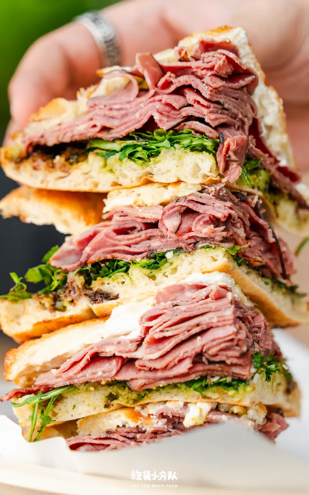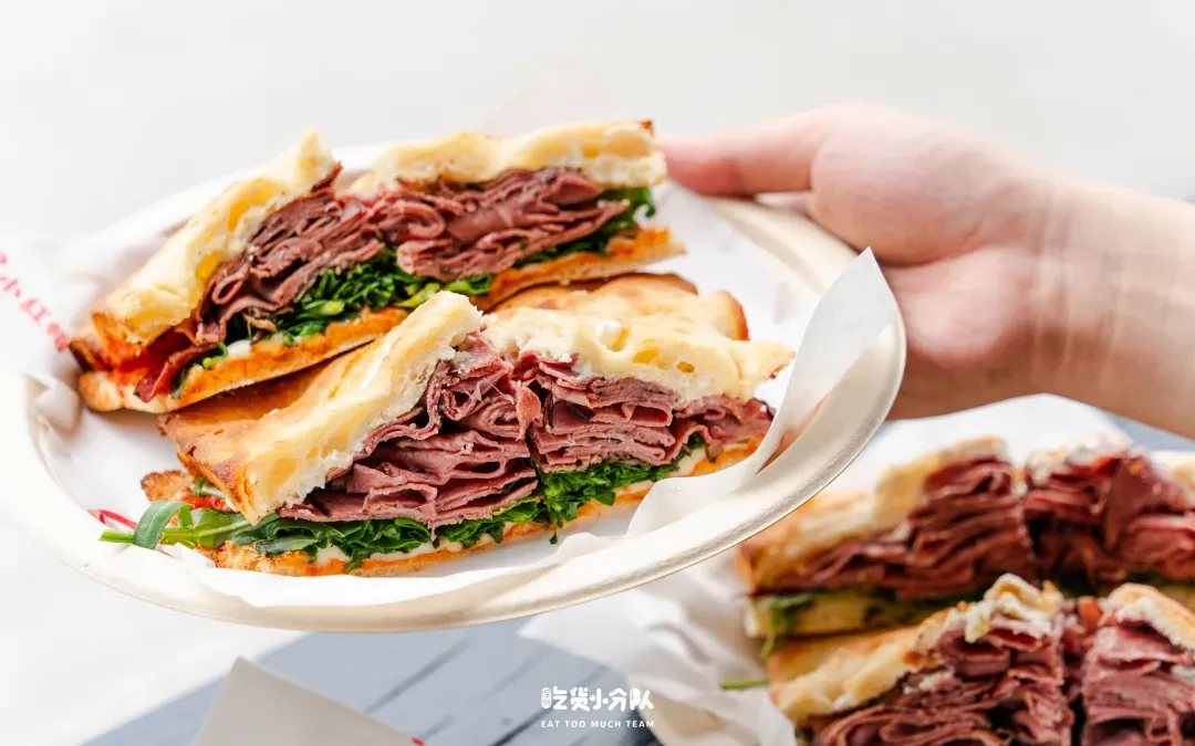 很火的“小红帽三明治”,深圳也有了,主打“正宗老北京意大利三明治”, 招牌“小红帽”,是一款冷吃三明治。定制款佛卡夏面包,油煎至表皮酥脆,搭配超丰富的低温慢煮牛肉片与芝麻菜和奶酪酱,灵魂是底部的青酱和顶部点缀南非辣椒。整体一口下去非常扎实,调味不重,基本就是食材的本味。
