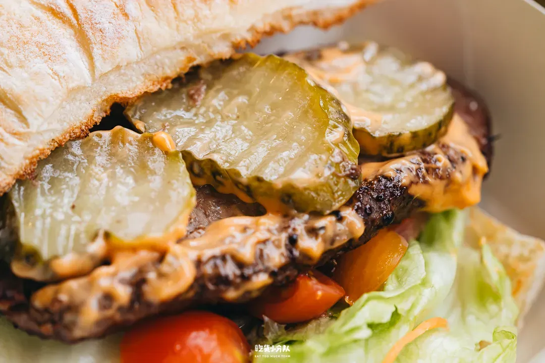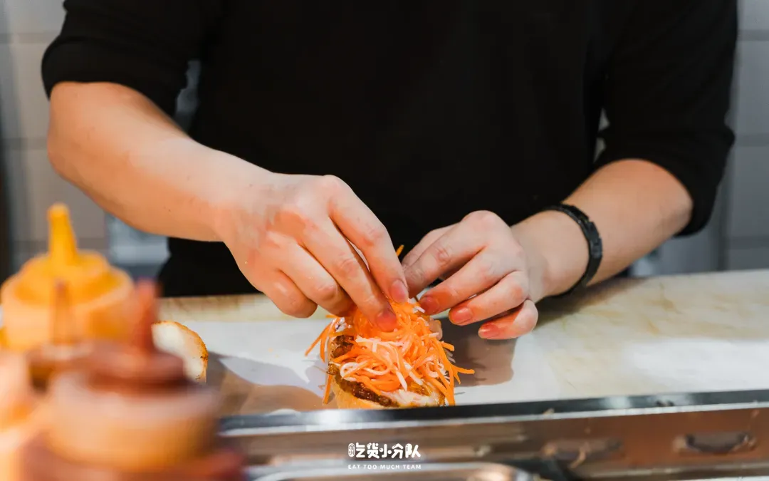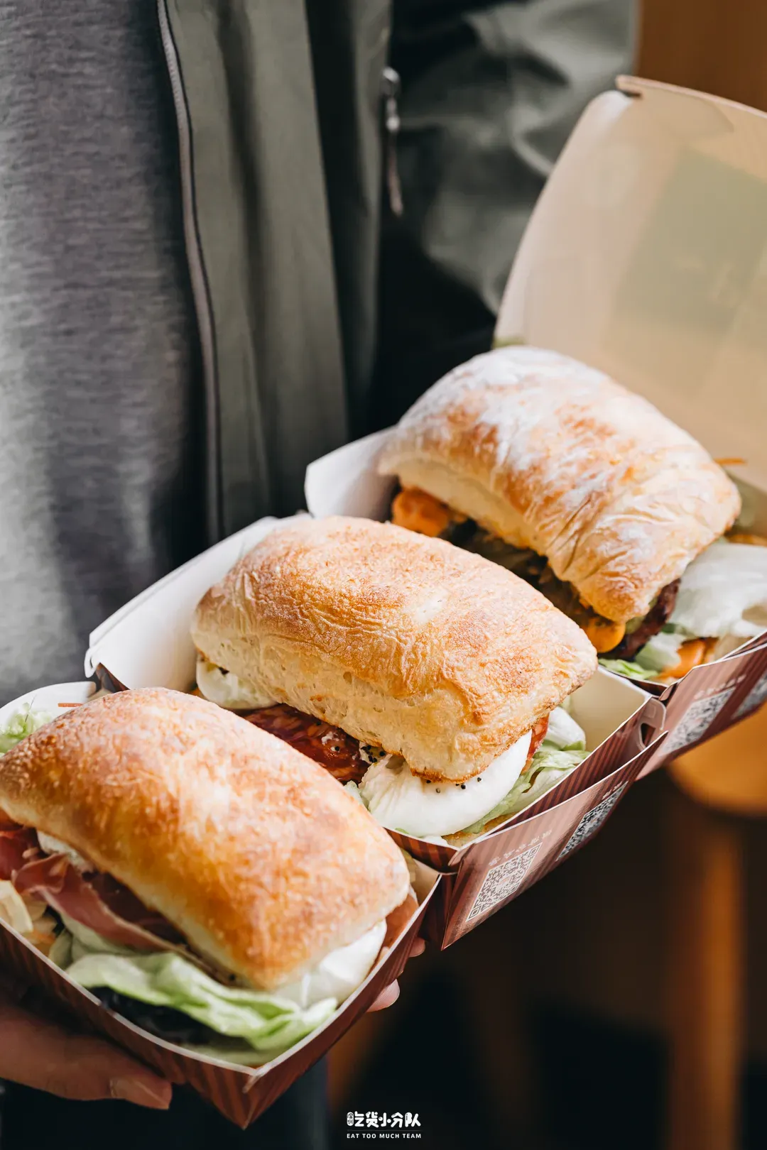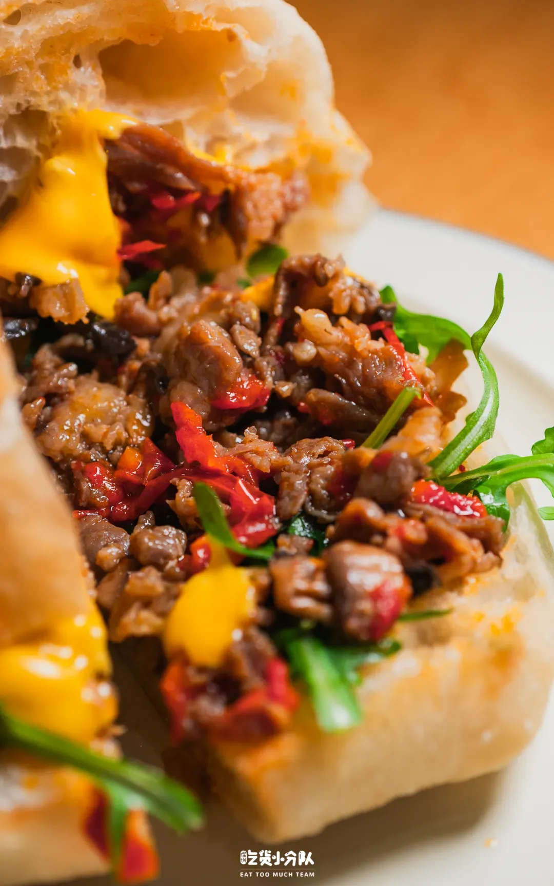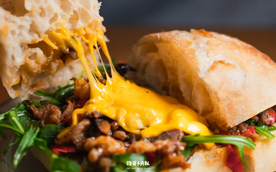 这是一家开在石厦的恰巴塔三明治专门店,口味非常丰富,而且搭配都很新奇。我们点的是最多人推荐的“红酸汤爆汁肥牛”, 恰巴塔外壳烤得比较硬,应该是为了更好支撑酱汁丰腴的馅,内馅有非常重的糟辣椒的味道,一闻就非常酸汤,与肥牛吃起来非常搭,芝士中和掉一部分辣味,口感富有层次。