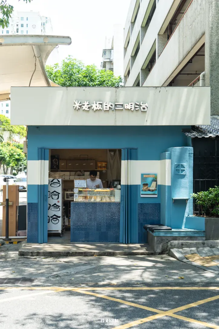 还记得益田村的蓝色窗口面包铺么,现在这里变成三明治专卖店了。店里主打的是水果口味的三明治,人气款的「草莓果酱蛋皮三明治」,当天到店的时候已经卖完了,尝了另一款「巧克力开心果三明治」,面包胚巧克力风味很足,吃起来不会太腻,内馅酱料有开心果颗粒,香气满满。经典的「火腿芝士三明治」,早餐搭配一杯咖啡很元气。