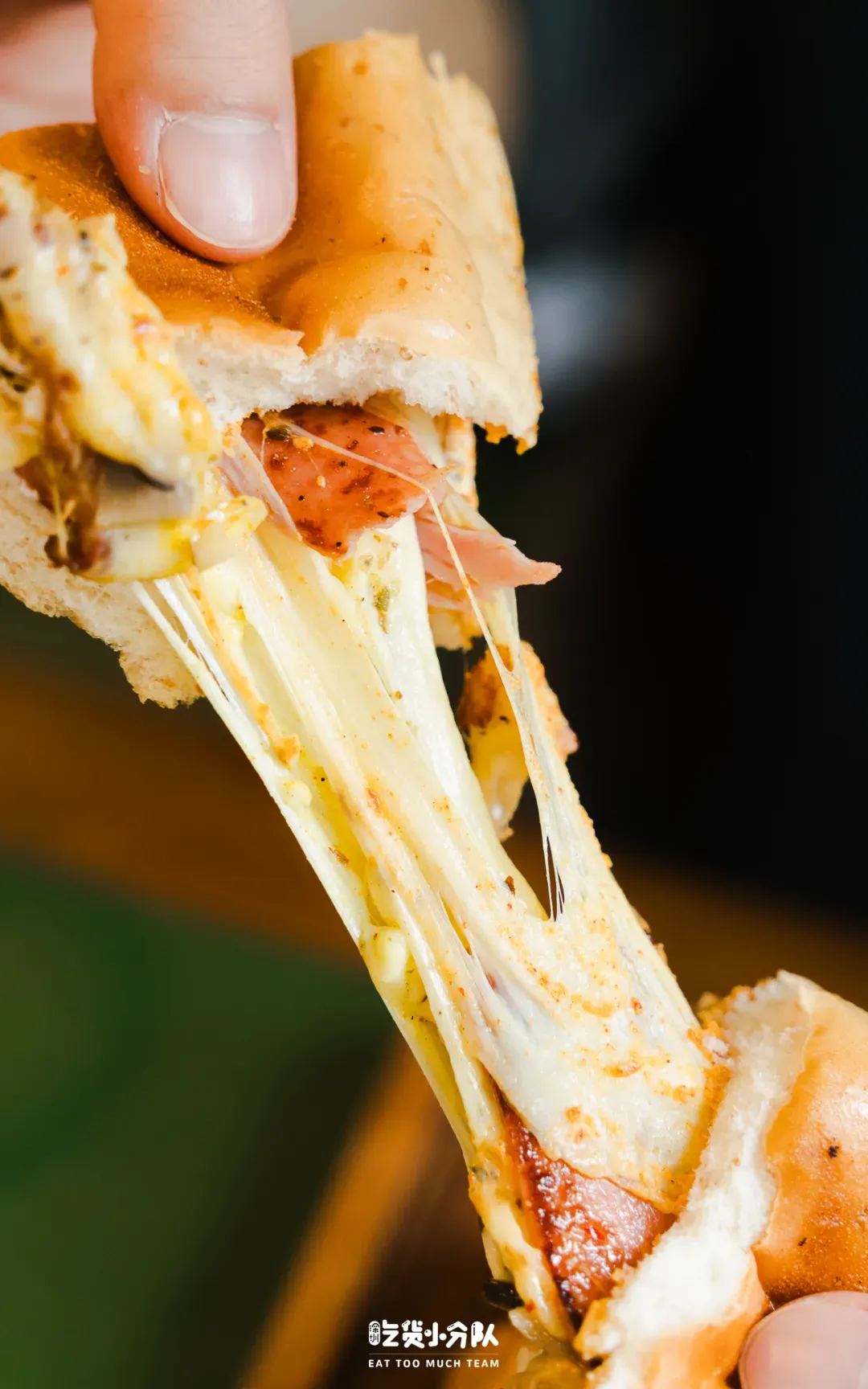 这款三明治叫做“Index”,最早出现在当地的大学附近,是一款热食三明治,深受当地年轻人和学生党喜爱。火腿+芝士+菌菇,就是“Index”三明治的标配,配菜都是现点现做的,就在咖啡吧后面的灶台操作的,芝士加热至融化,搭配煎菌菇与火腿一起包入白面包,足量的芝士带来超级拉丝的效果。