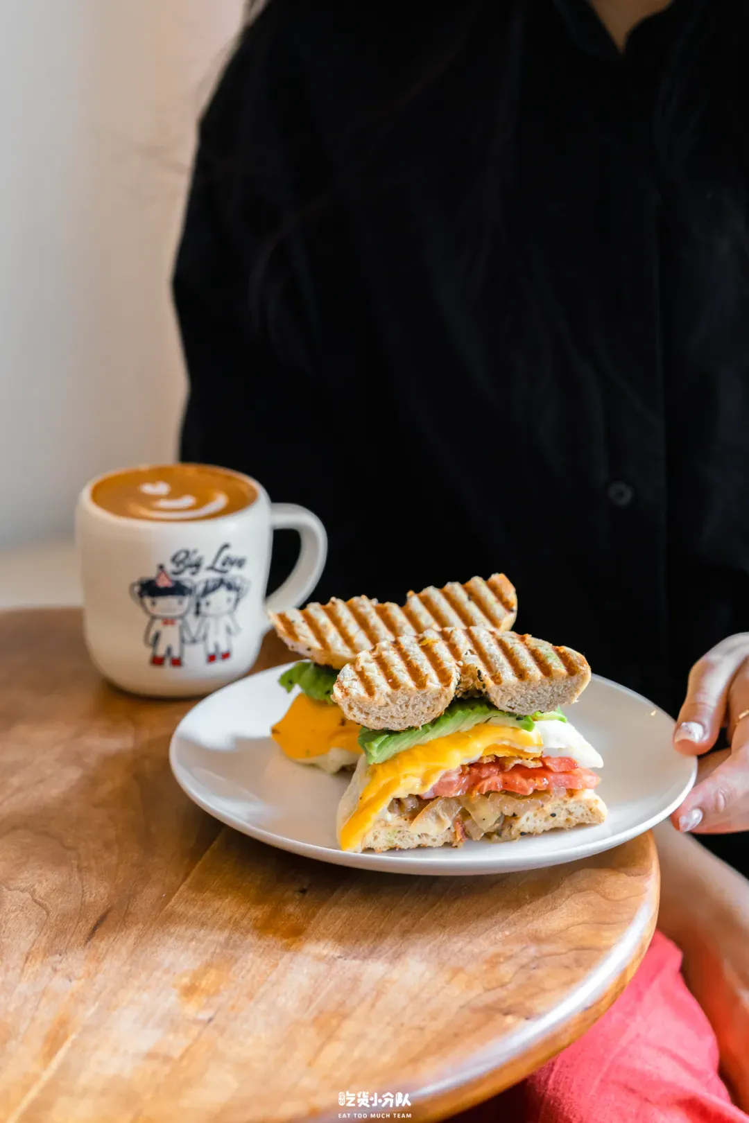 每天早上9点半开档,店员小哥就开始不停做三明治,一直到接近午间才有休息的时间。他们家三明治的馅料都是现点现做,吐司可以选全麦和牛奶,还可以加价选酸吐司和贝果。招牌的「费城牛肉三明治」,肉量满满,三层面包夹两层馅料,吃一个真的很饱腹了。