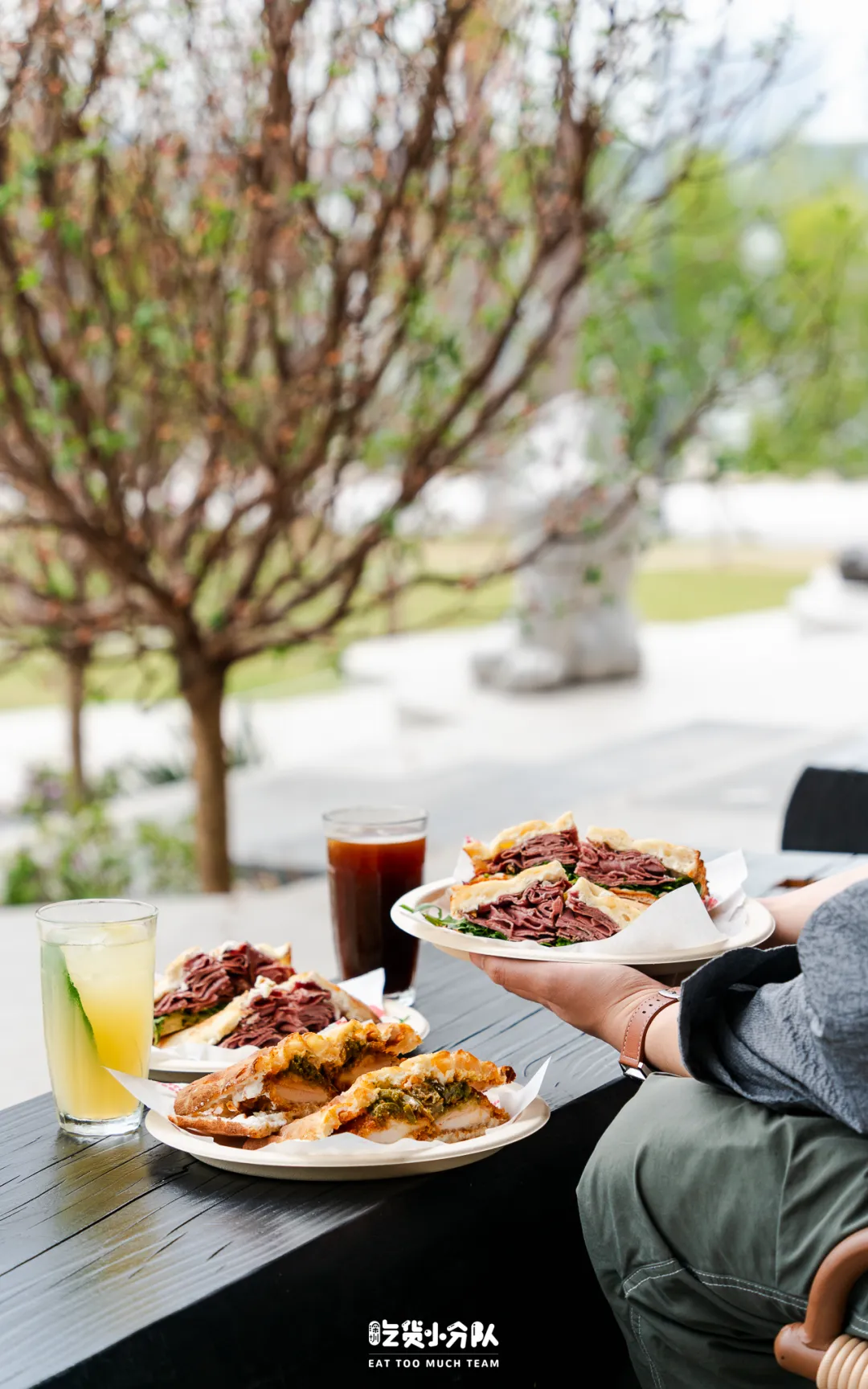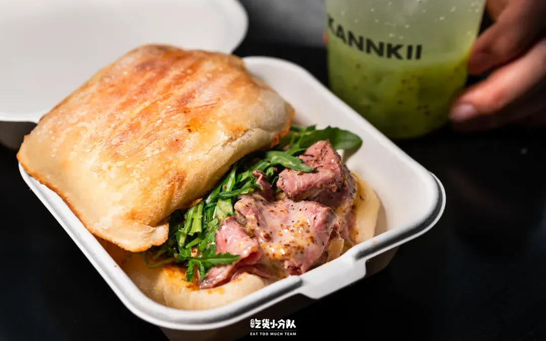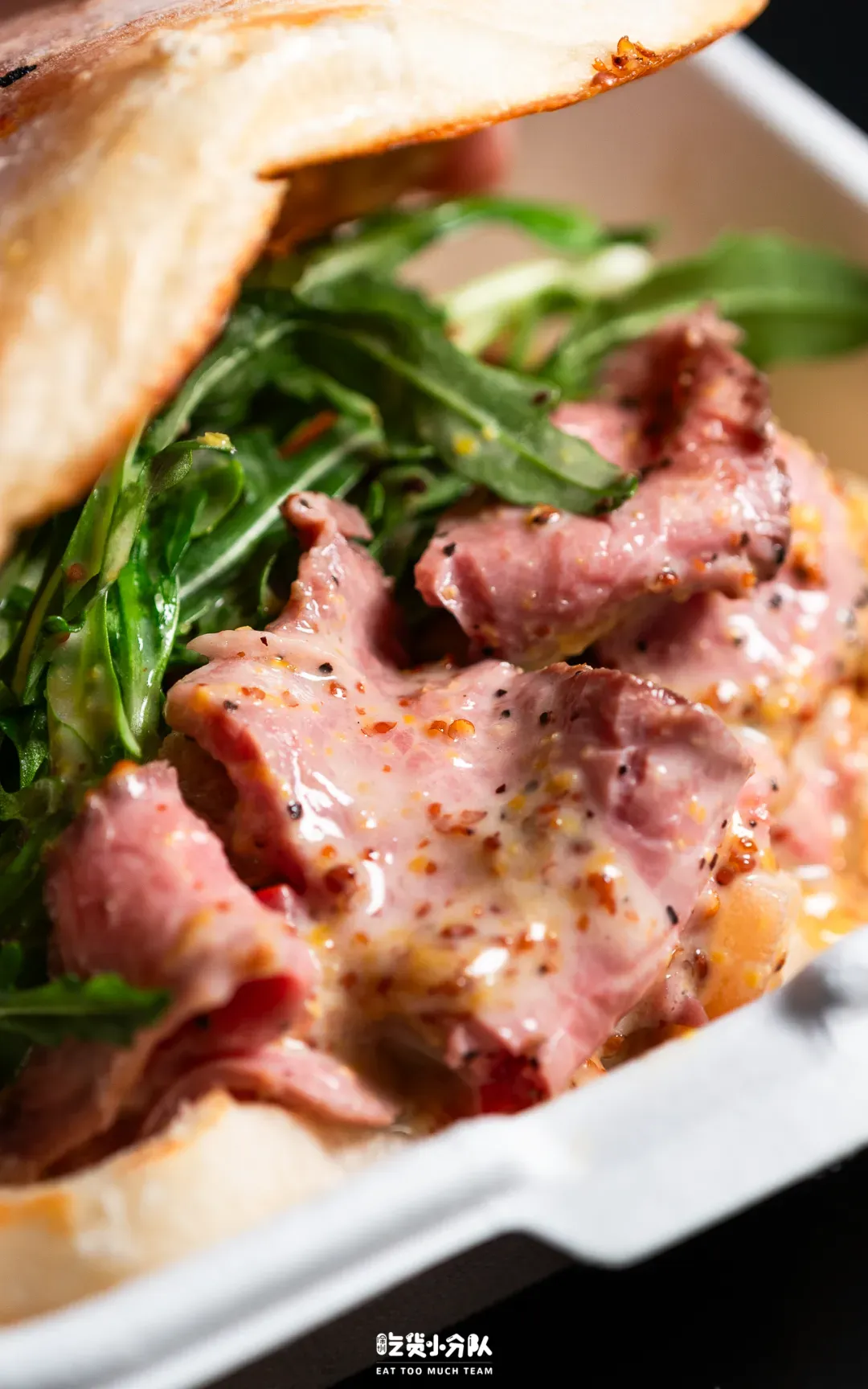 这家今年新开的咖啡店,是福田CBD一众上班族的放风地,店里除了咖啡,还售卖以恰巴塔三明治为主的简餐。我们随机点了一款“低温牛肉”口味的,恰巴塔底是本期最软的,没有恰巴塔粗犷的表皮,比较好下嘴,内里的牛肉分量挺足的,配菜也很丰富。