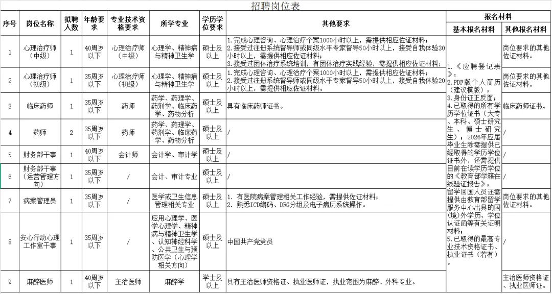 深圳市康宁医院始建于1980年,是深圳市唯一一家集预防、医疗、康复、科研、教学于一体的公立三甲精神病专科医院。2007年医院加挂深圳市精神卫生中心,承担全市精神卫生防治和康复技术指导、流浪乞讨精神病人救治和强制医疗精神病人的收治任务。2017年荣膺第五届全国文明单位;2019年精神科获评广东省高水平临床重点专科;2020年获批深圳市高水平医院(区域医疗中心);在2022年度全国三级公立医院绩效考核精神专科医院排名中位列全国第五;2023年获批国家临床重点专科建设项目。现医院因业务发展需要,面向社会招聘,具体如下: