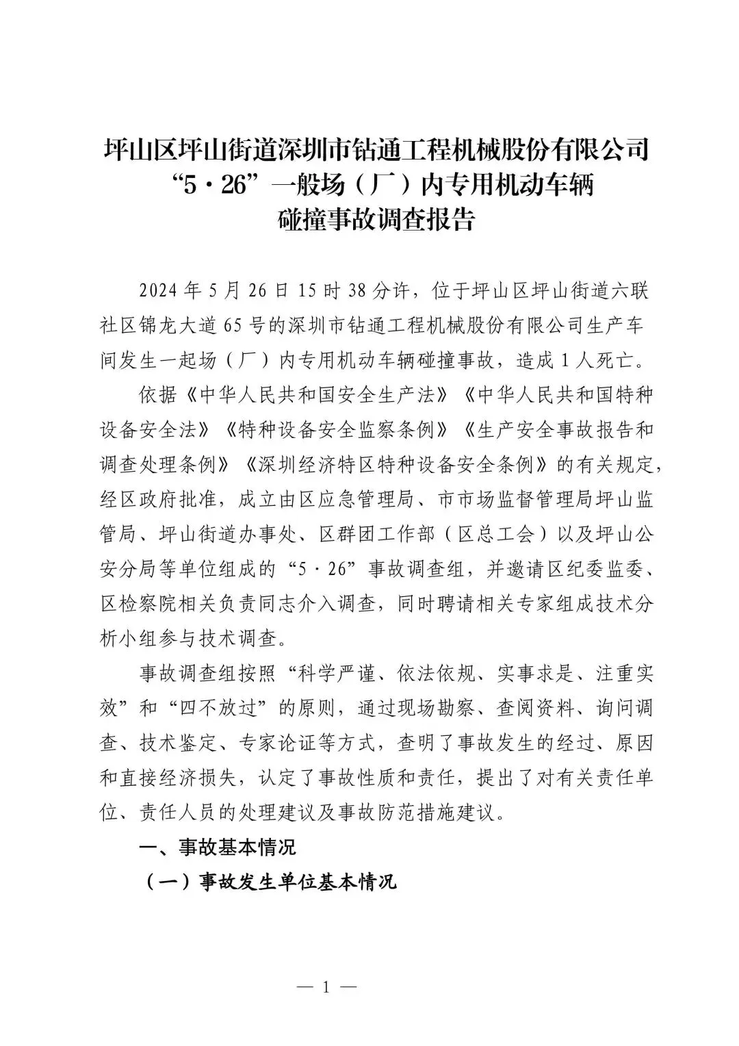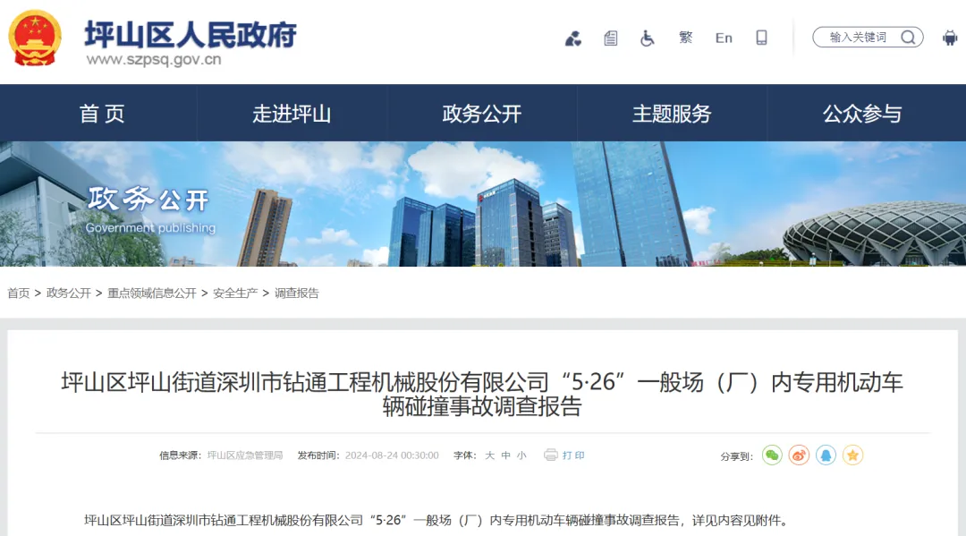 日前,深圳市坪山区人民政府公布了该起事故的调查报告。