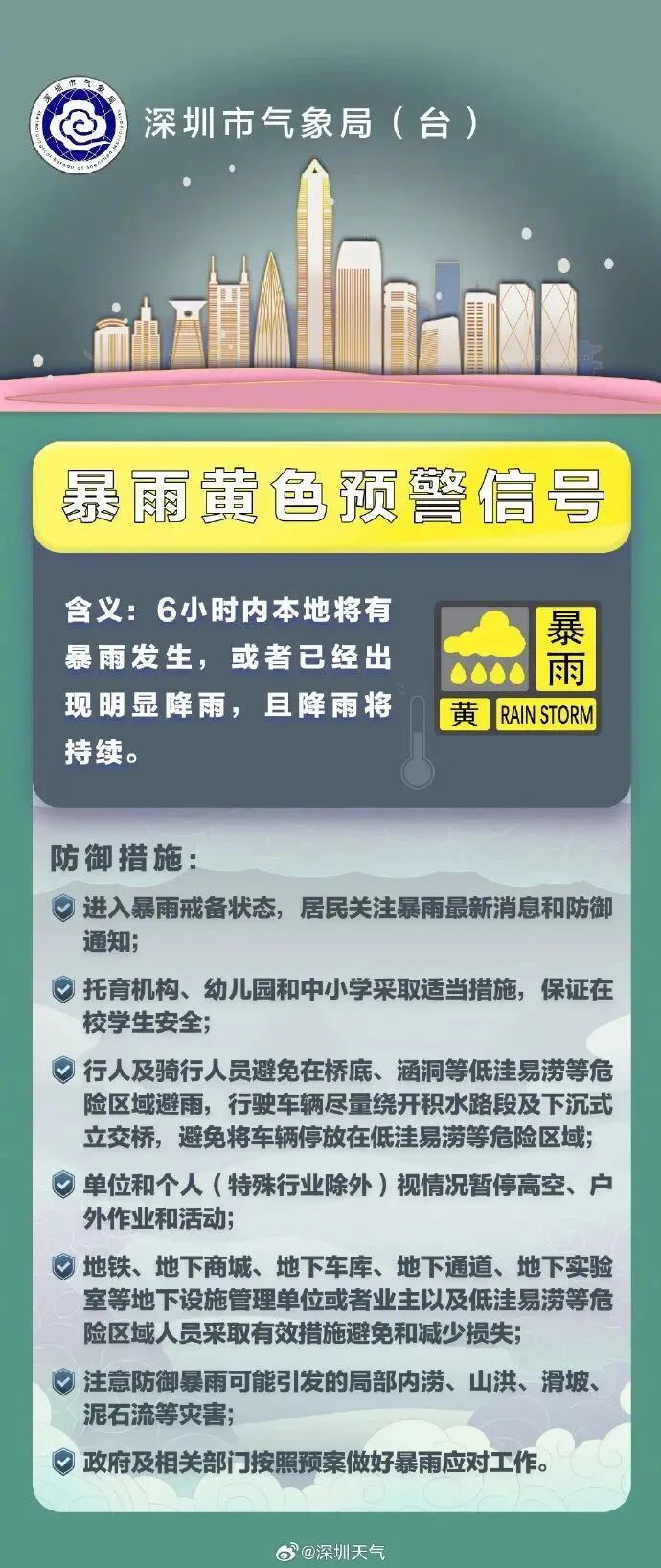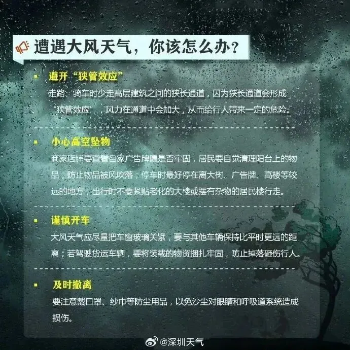4.大家可以通过深圳天气APP、官方微博、微信和官网等渠道及时查询最新预警预报信息。