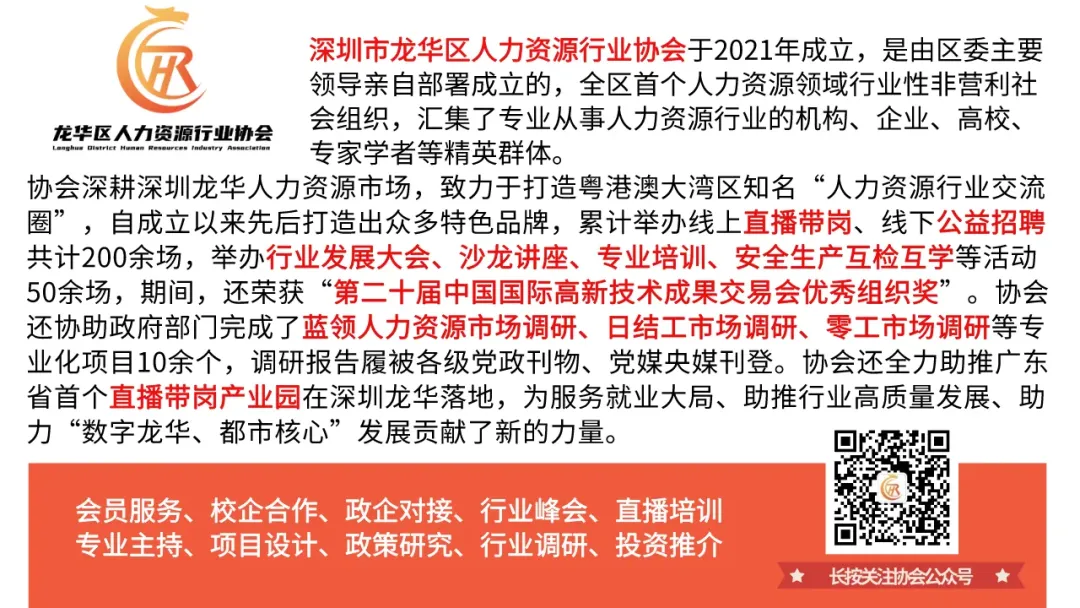 3月17日,由龙华区委政法委资助、龙华区人力资源局指导,深圳市龙华区人力资源行业协会承办的“2025年龙华区平安创建专项经费项目--龙华区人力资源行业劳动争议预防化解赋能行动1.0‘法律体检(第二批)’服务活动”,在众多大型人力资源机构总部集聚区--龙华区人力资源服务产业园圆满开展。