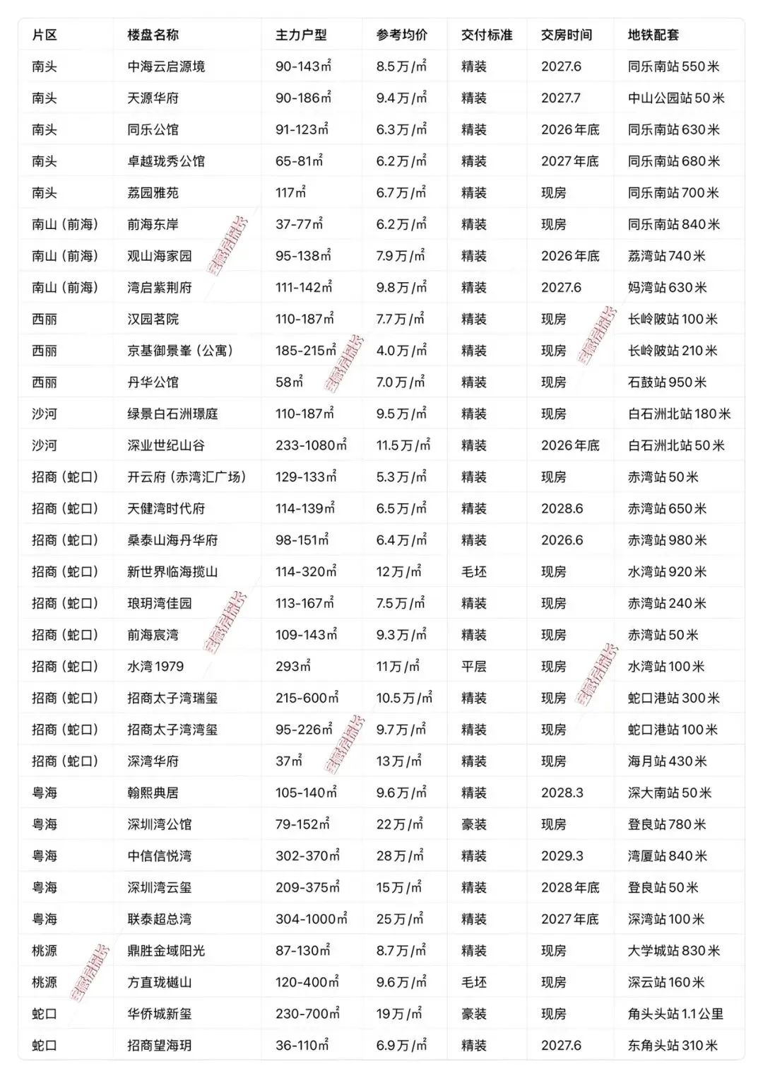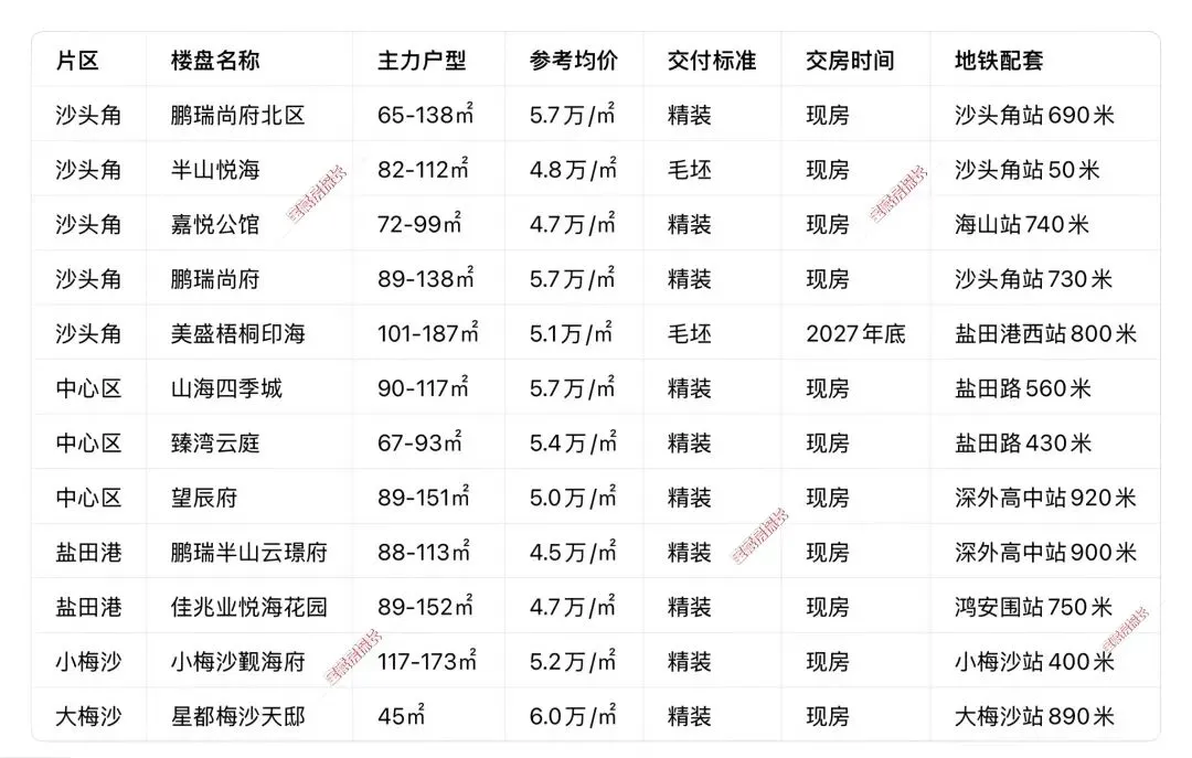 • 核心特点:南山刚需主战场,流通性最好,覆盖南头、前海、西丽、蛇口等片区
