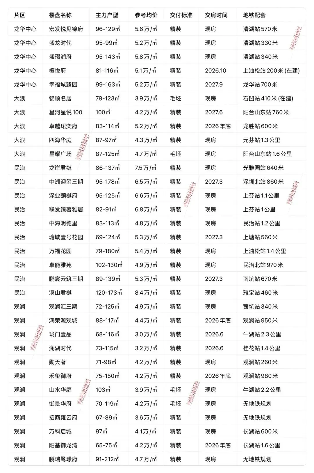 • 核心特点:龙华新房成交绝对主力,流通性最好,覆盖龙华中心、大浪、观澜、民治远郊全片区